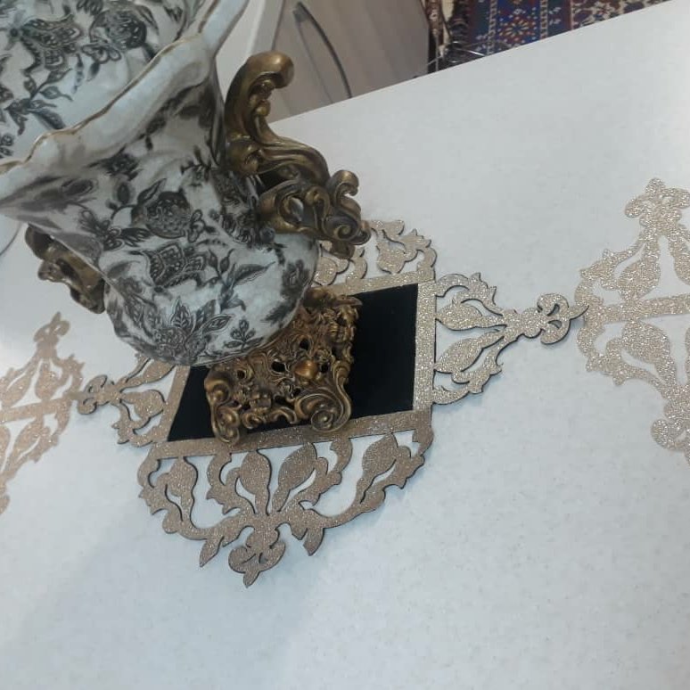 ست کامل عسل خوری و رومیزی وزیر بشقابی تهیه شده از چرم مصنوعی اکلیلی و جیر