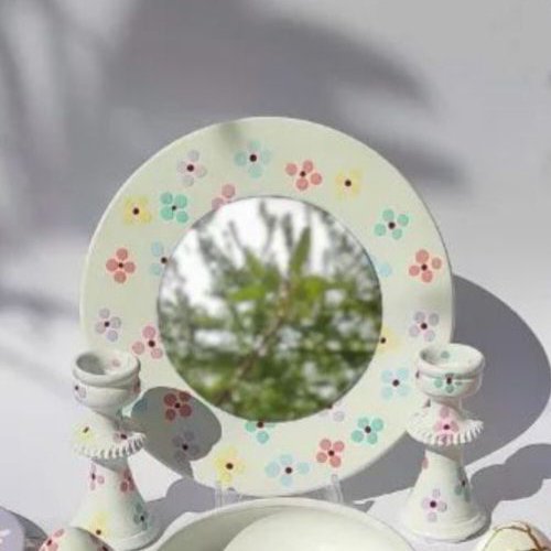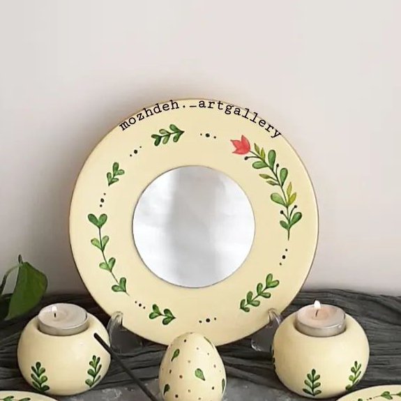 آیینه سفالی سفره هفت سین به قطر۲۵ یه کار شیک و خوشگل با هر طرح و رنگی که بخواید قابل سفارشه.