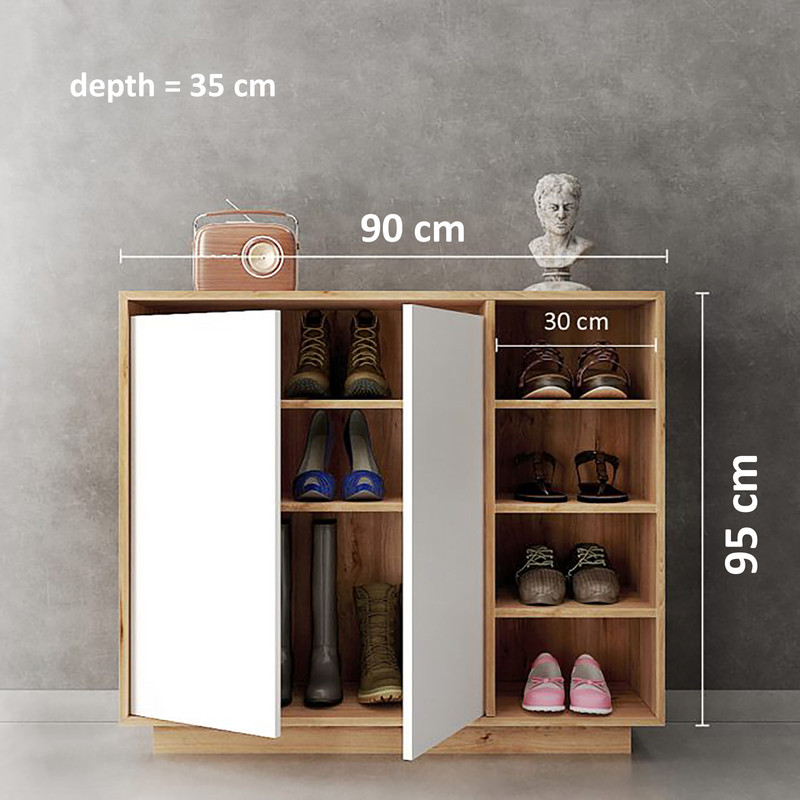 جاکفشی درب دار کد IKE 4901 جنس روکش از ملامینه ضد خش میباشد و دارای دو درب که درب ها دارای لولای آرام بند درجه یک و دارای هفت طبقه ( سه طبقه داخل درب ها و چهار طبقه کنار درب) و از استحکام و مقاومت بالایی برخوردار است . چند رنگ شامل بدنه و طبقات قهوه ای روشن و دربهای سفید میباشد .