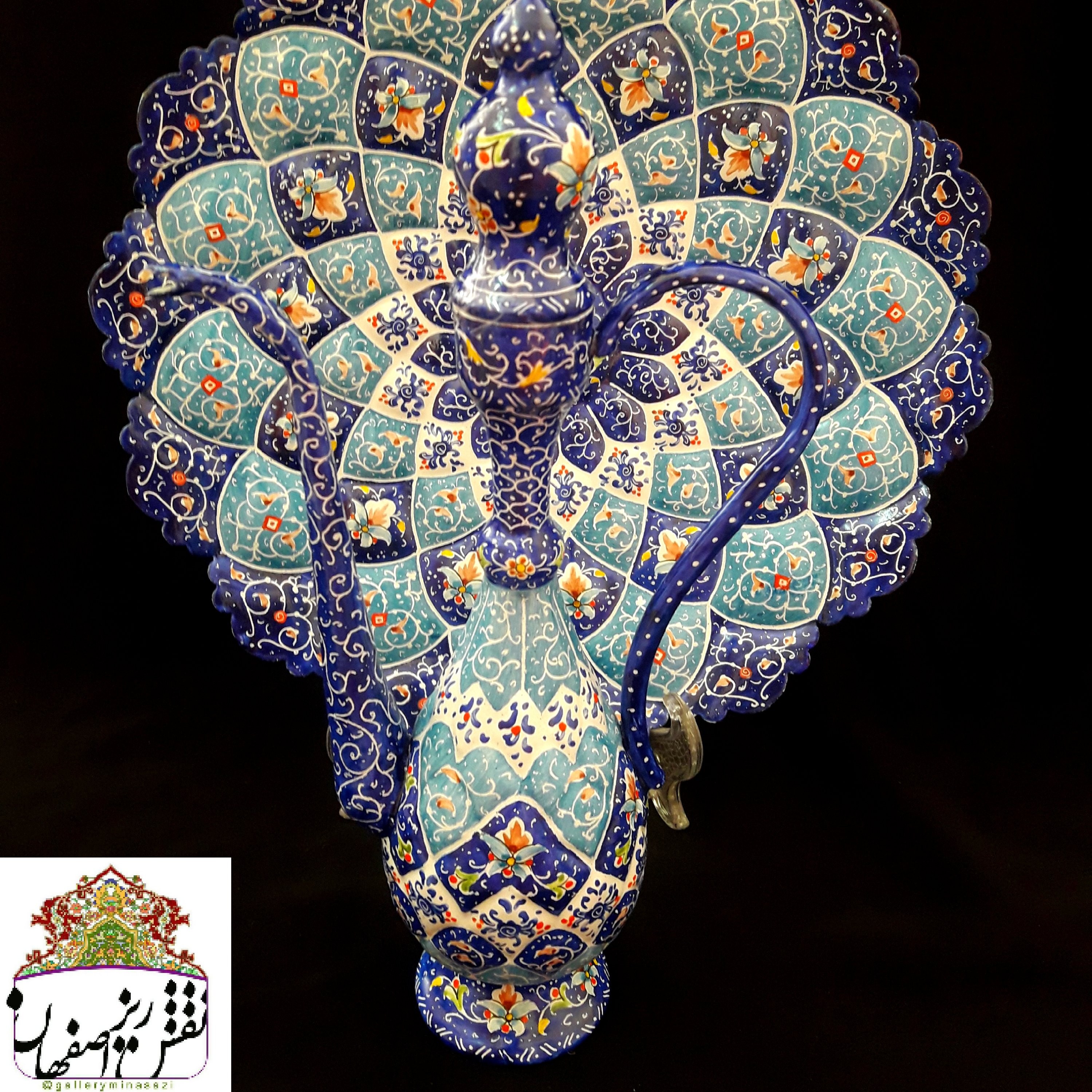 ست شامل گلاب پاش با ارتفاع34سانتی متر و بشقاب به قطر 30سانتی متر دارای طرح نفیس و ترکیب رنگ متفاوت