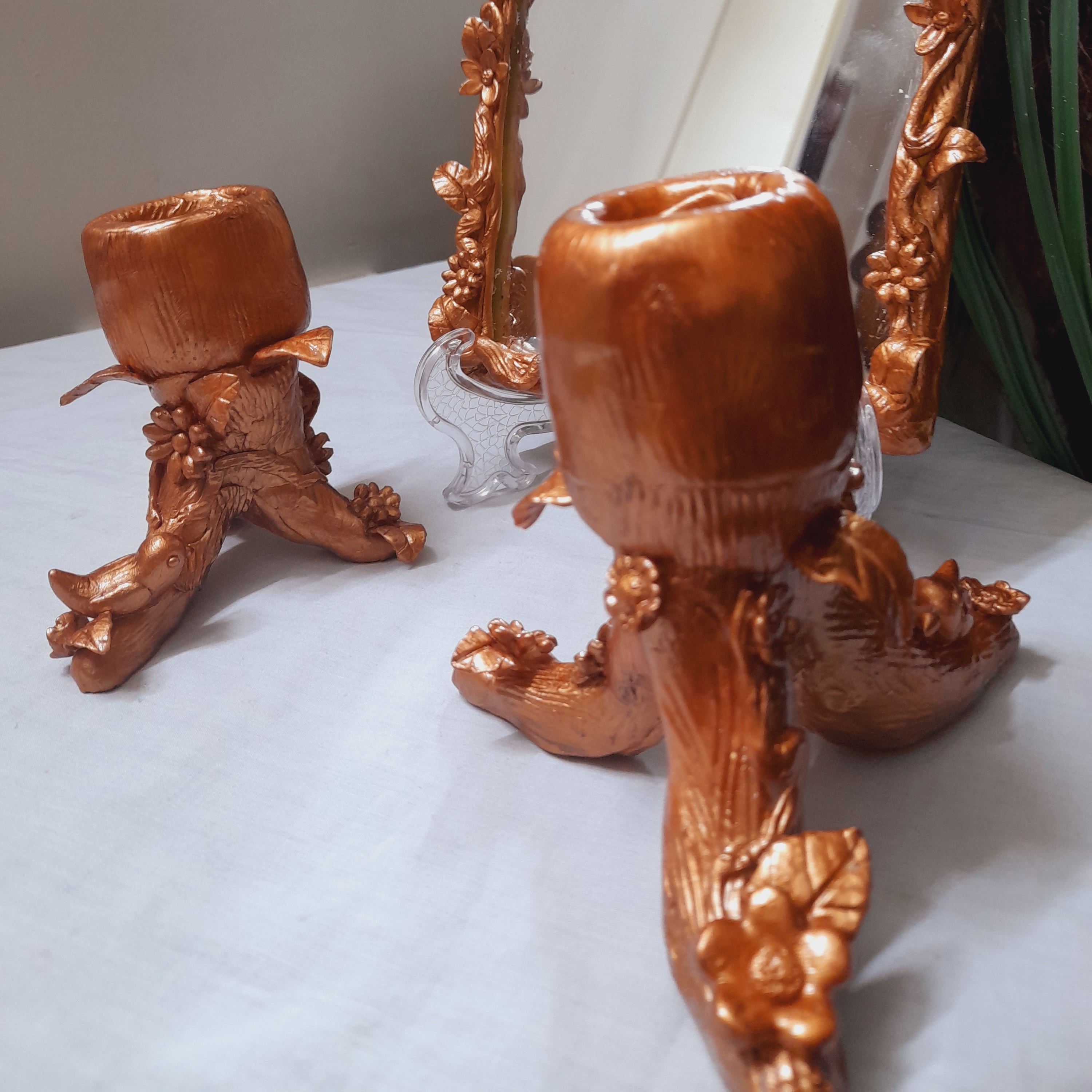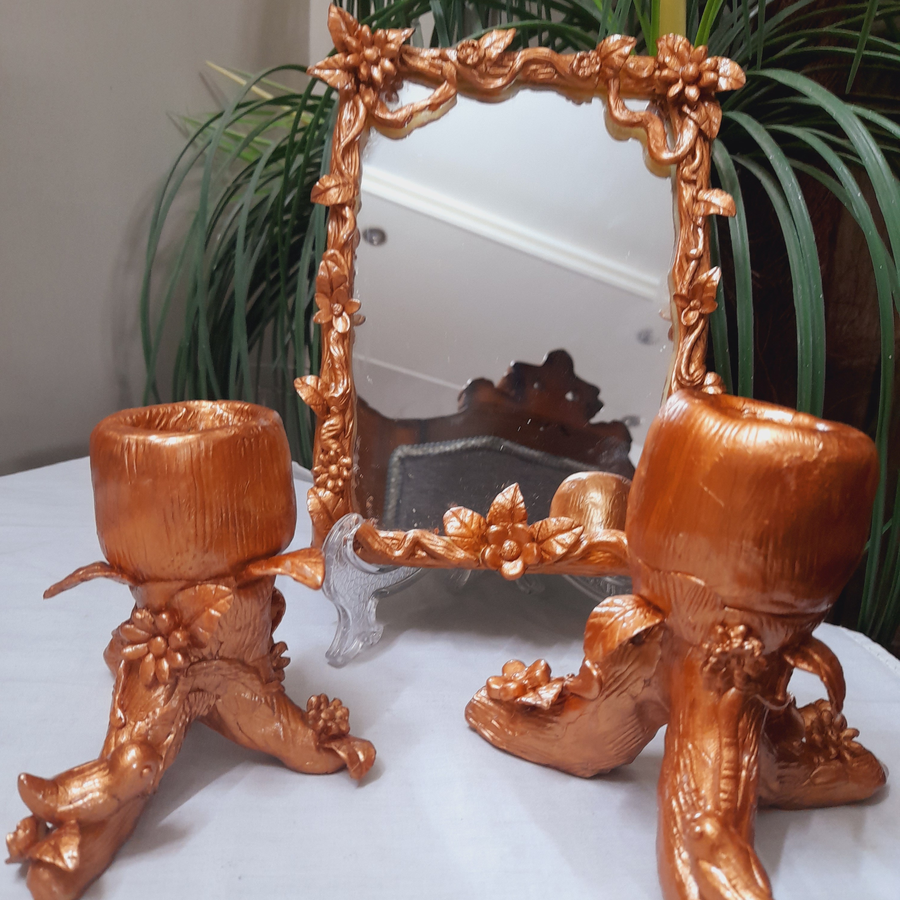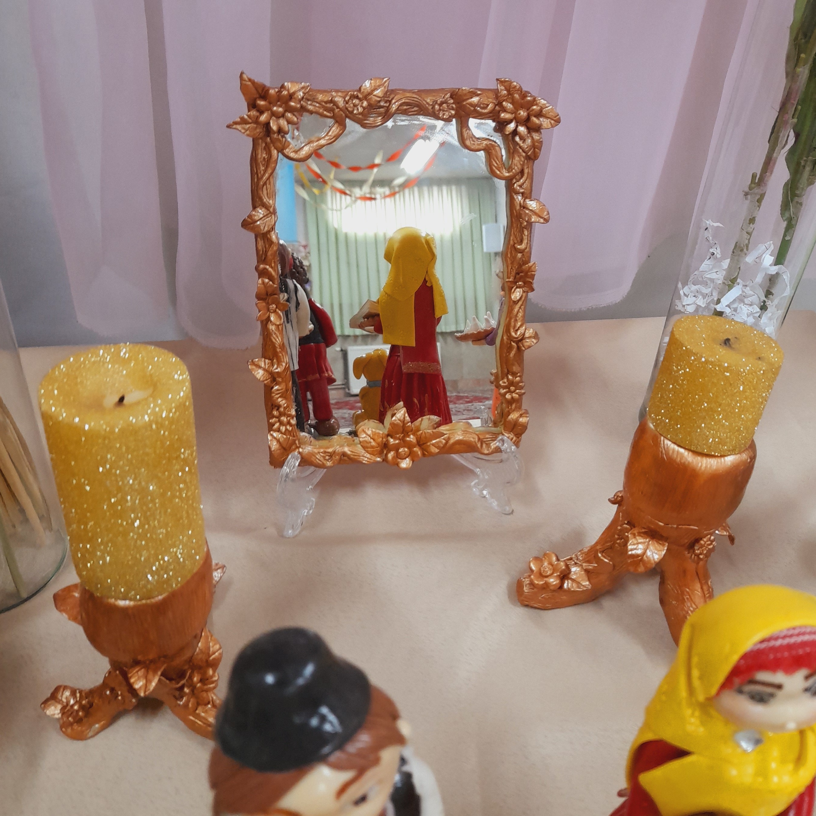 کار اینه و شمعدان کاری جدید که زینت بخش سفره های هفت سین شماست این کار به رنگ مسی به سلیقه مشتری ساخته شده اگر رنگ نقره ای یا طلایی و یا حتی رنگارنگی خواستید قبلش باهم گفتگو کنیم البته این کار بدون شمع میباشد