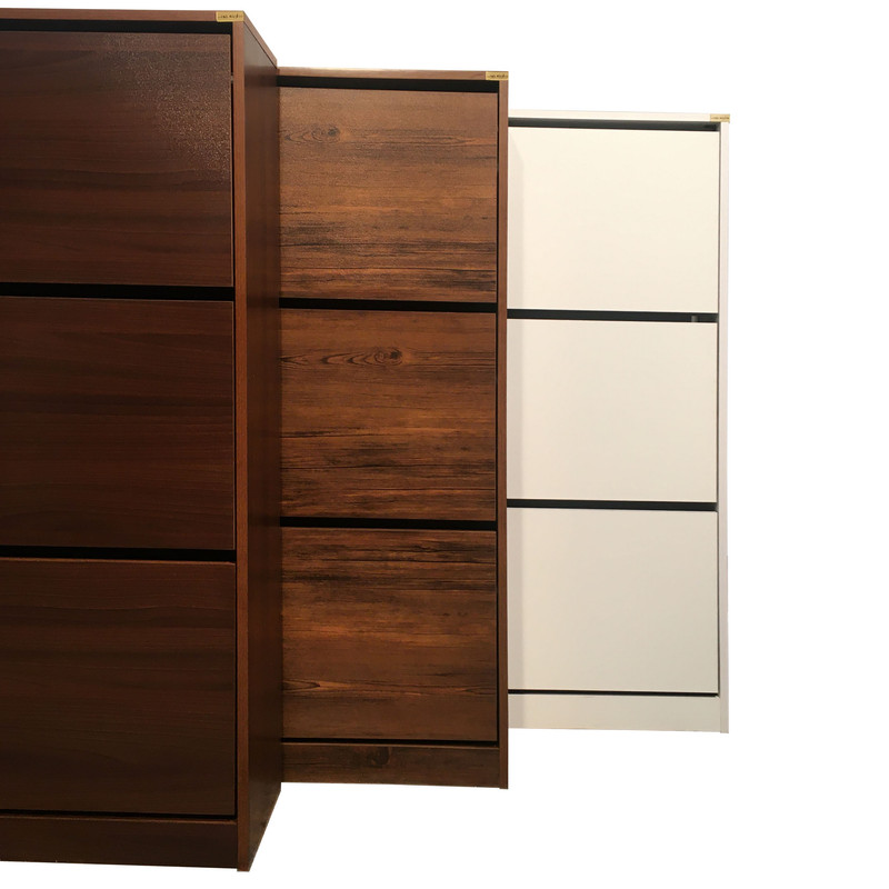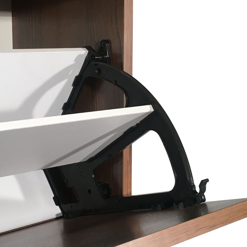 جا کفشی مدل «350B» که درنگاه اول به صورت یک پارچه دیده میشود در واقع از سه طبقه مستقل به عنوان جای کفش با قابلیت قرار گرفتن 12 تا 18 جفت کفش در نظر گرفته شده است. در صورت نیاز قابلیت برداشتن صفحه جداکننده هر طبقه برای ایجاد فضای بیشتر برای کفشهای ساق دار وجود دارد. جنس بدنه خارجی از نئوپان با روکش ملامینه ضد خش که در برابر ساییدگی و رطوبت مقاوم میباشد که تمام لبههای خارجی کار با نوار پیویسی به ضخامت یک میلیمتر پوشانده شده که در برابررطوبت محیط و جابجایی مقاومت بالایی به محصول میدهد. اتصالات بکار رفته دراین محصول بصورت توکار بوده و هیچگونه پیج و سوراخی بر روی محصول وجود ندارد، طبقات جاکفشی از جنس امدیاف ۸ میلیمتری با روکش ملامین انتخاب شده ولبه های خارجی آن با نوار پیویسی پوشانده شده تا در هنگام نظافت داخل جاکفشی از نفوذ آب ورطوبت جلو گیری نماید . این کار برای برای سلایق مختلف در سه رنگ قهوهای(گردویی)، قهوهای روشن(آنتیک) و سفید تولید شده است