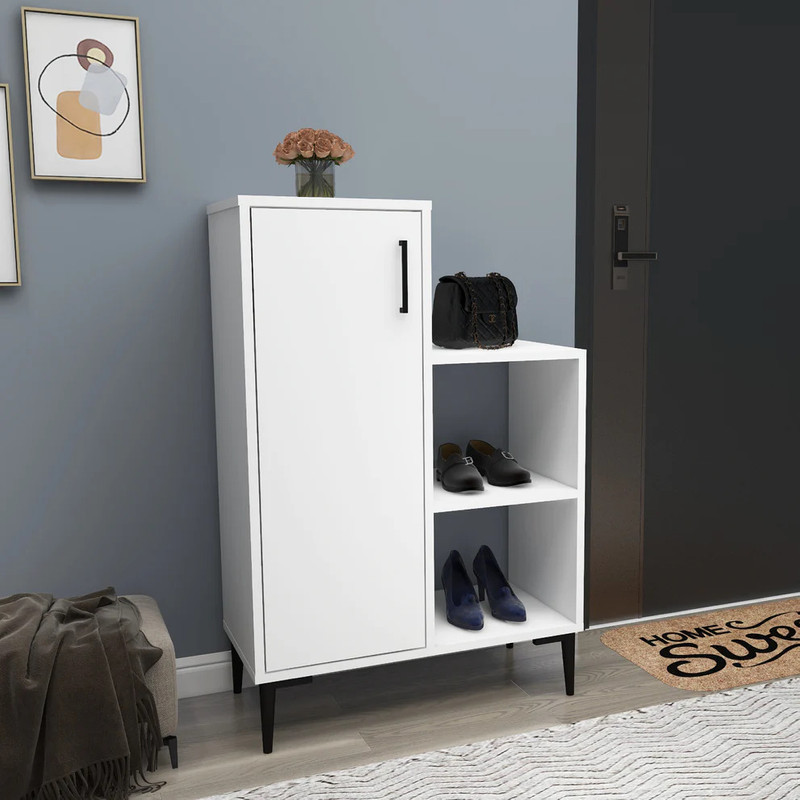 جاکفشی مدل IKE663 جنس روکش از ملامینه میباشد و دارای یک عدد درب با لولای آرام بند با کیفیت و پایه های پلاستیکی با رنگ مشکی و همچنین مقاوم و این کالا از استحکام و مقاومت بالایی برخوردار است و در رنگ بندی های زیبا و شکیل میباشد.
