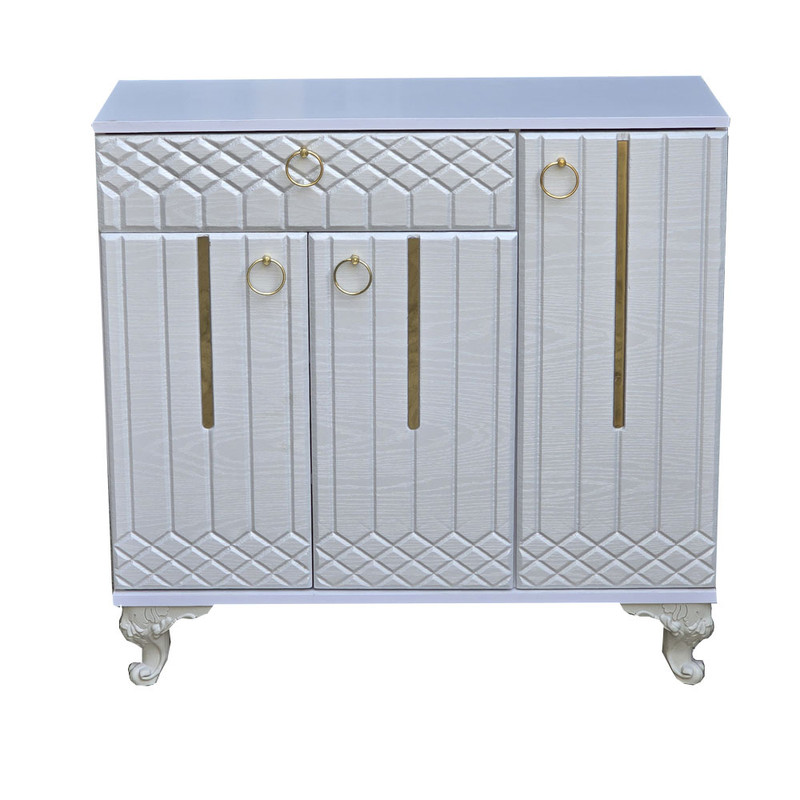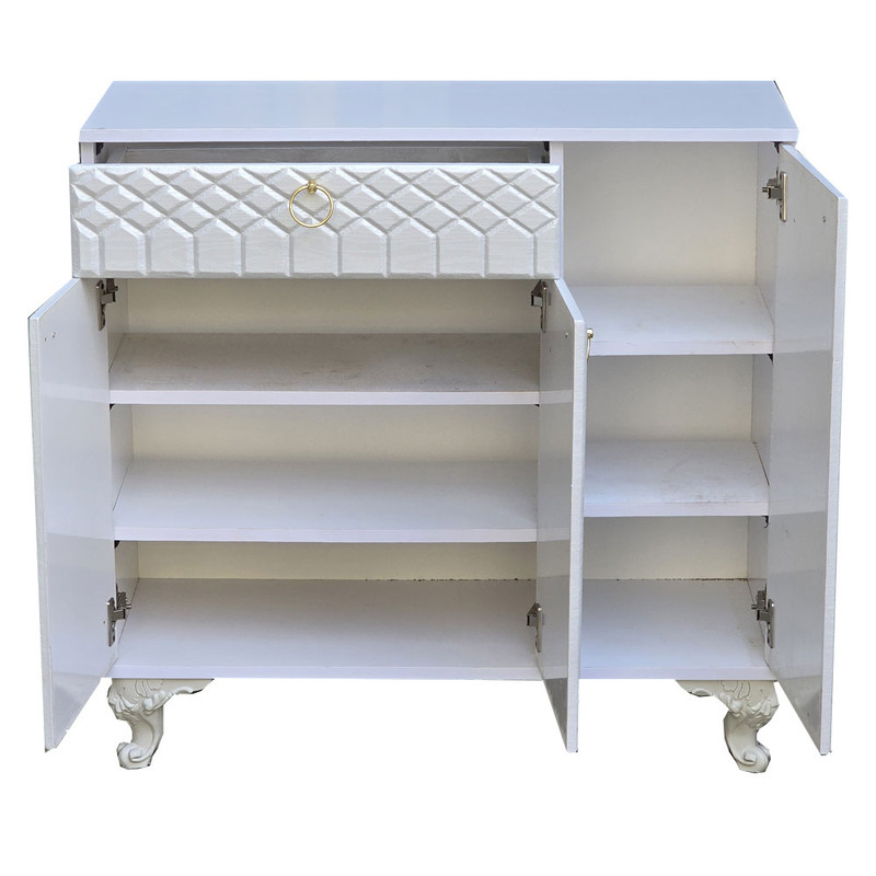 جا کفشی مدل 2024 طرح جدید جا کفشی از جنس mdf با لایه های آینه ای میباشد. این جا کفشی دارای ابعادی 32x90x83 سانتی متر بوده و دارای 3 درب و یک کشوی مخصوص واکس و سایر لازم کوچک میباشد.جاکفشی آینه ای مدرن و بروز بوده و میتواند تا 11 جفت کفش در ابعادمختلف را در خود جای دهد.