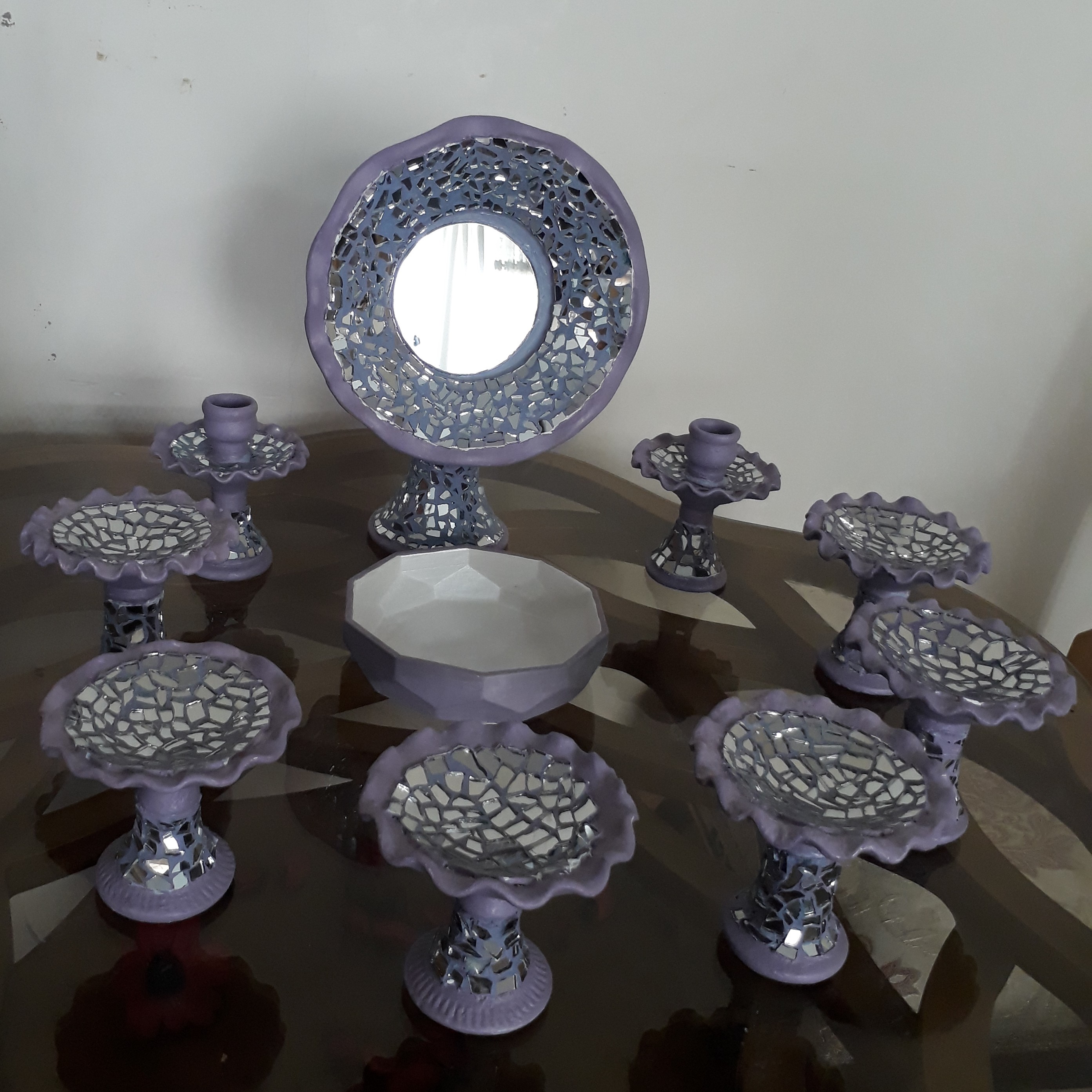هفت سین آینه کاری شامل یک آینه یک جفت شمعدان شش عدد ظرف هفت سین یک عدد جاسبزه قابل شستشو ارسال به سراسر کشور