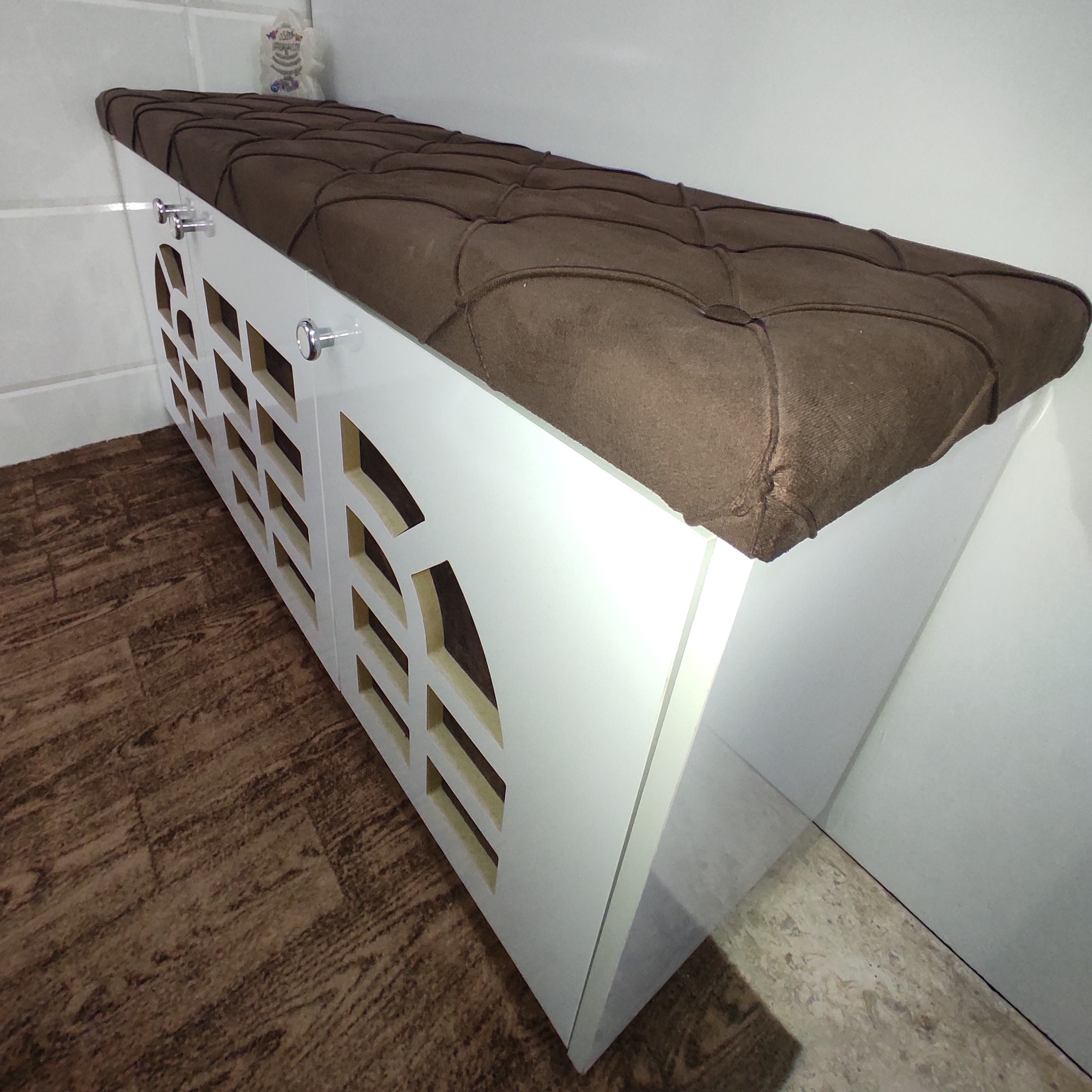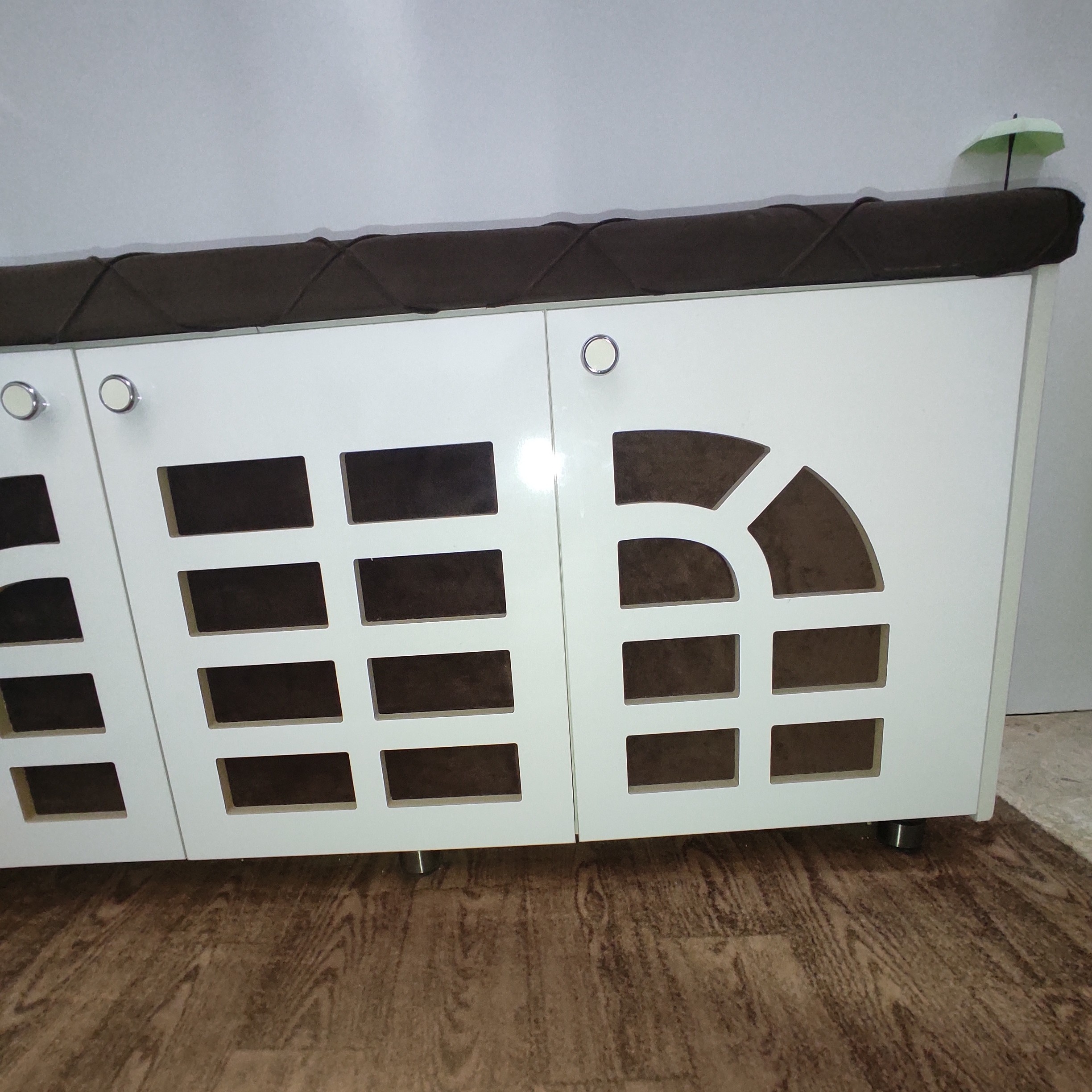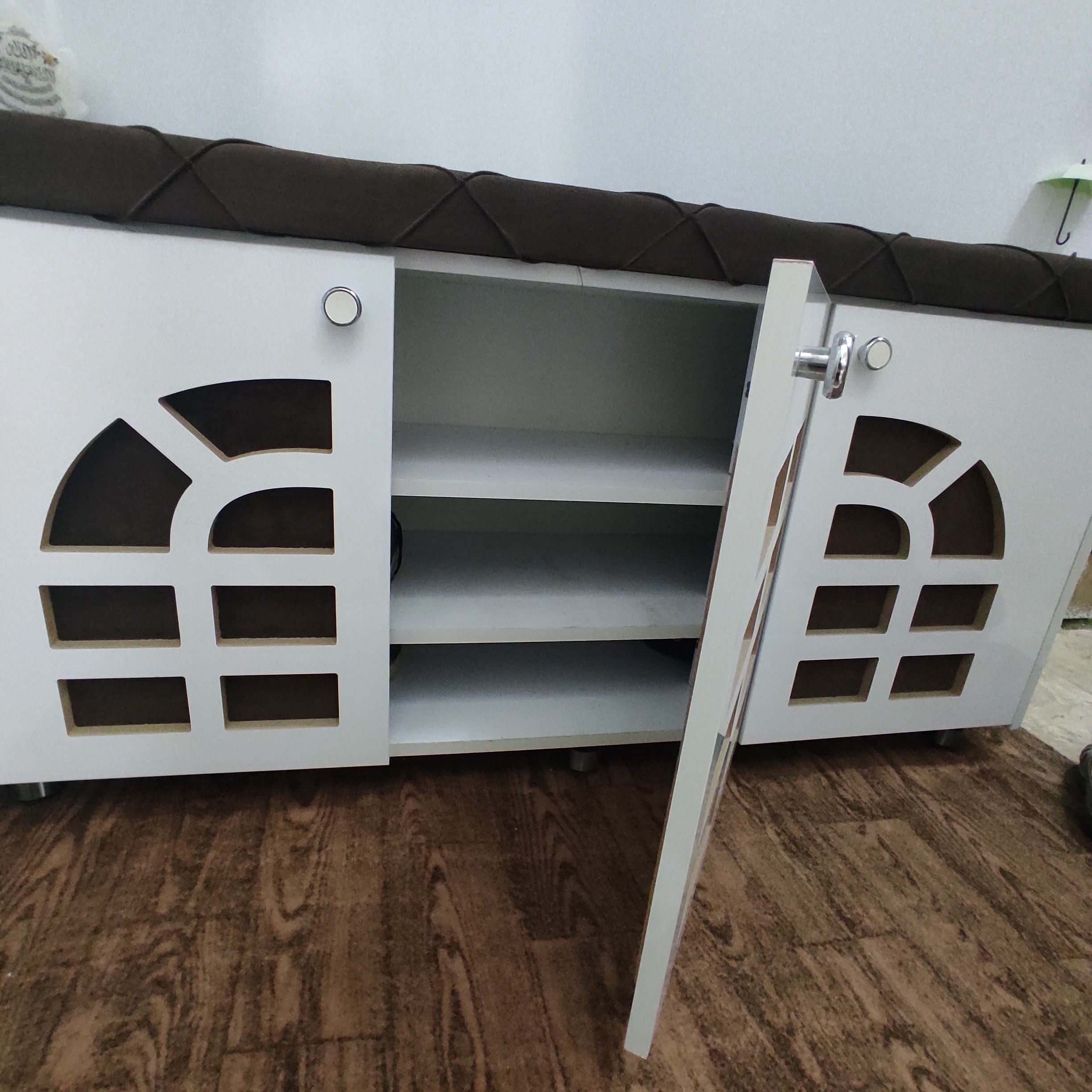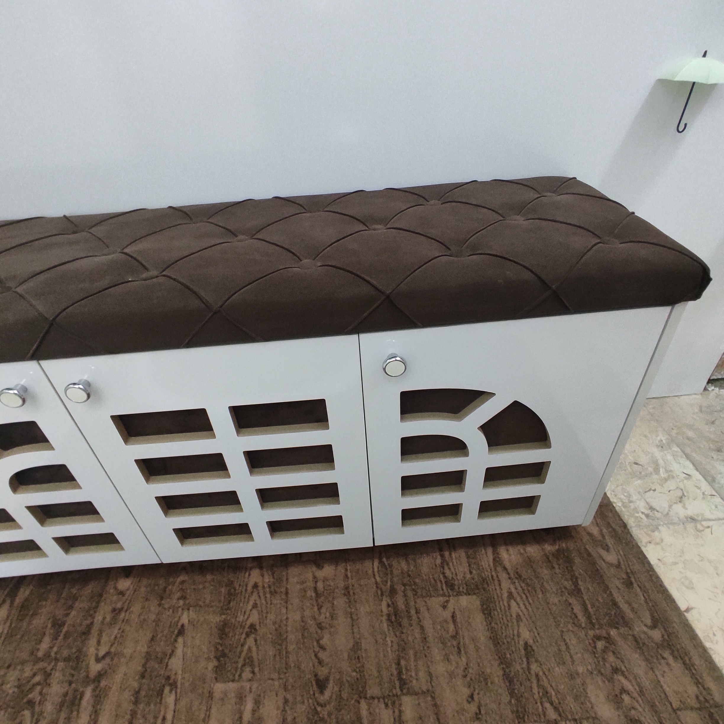 جا کفشی نشیمن دار ودرب سی ان سی طرح دار ، با ام دی اف و رویه مبلی لمسه کوبی شده،با کیفیت عالی