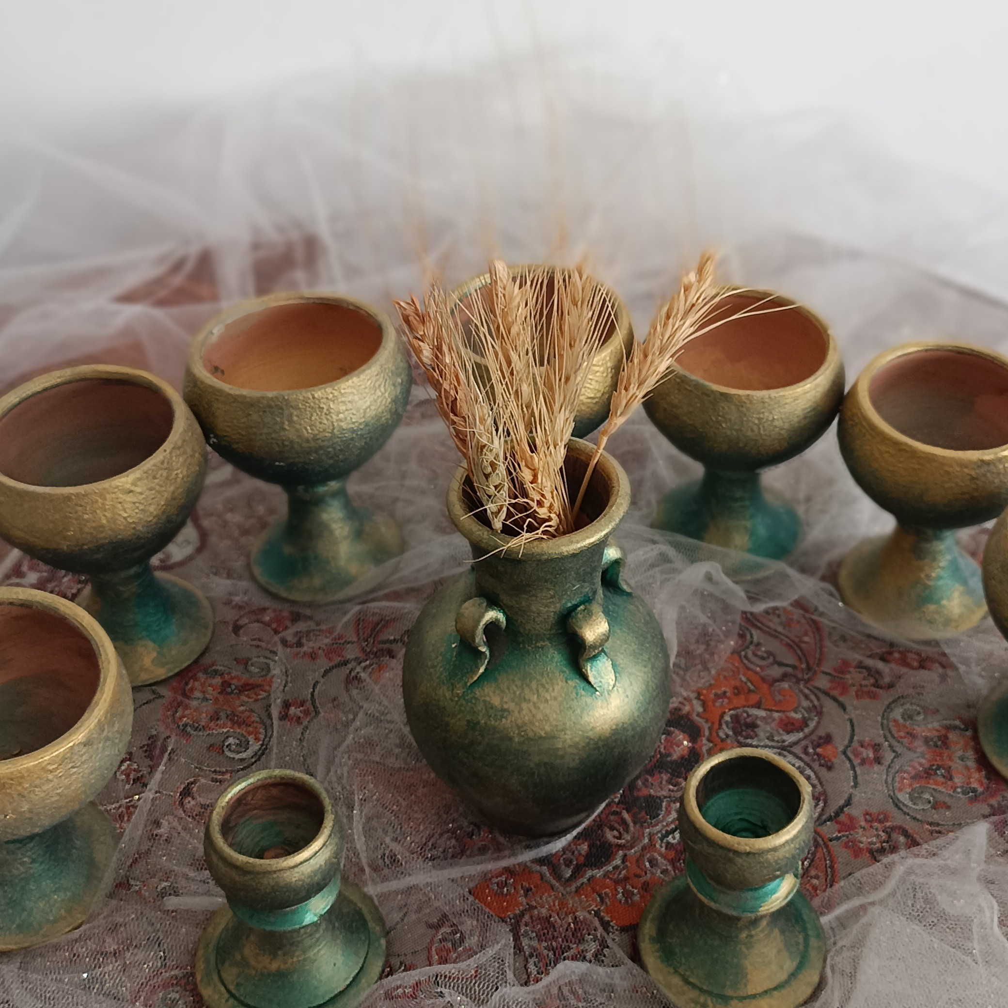 هفت سین سفالی کار شده با رنگ اکرولیک و برجسته سازی شده با تکسچر کاملا ضد آب