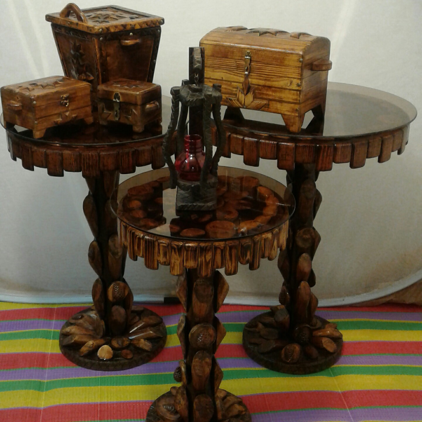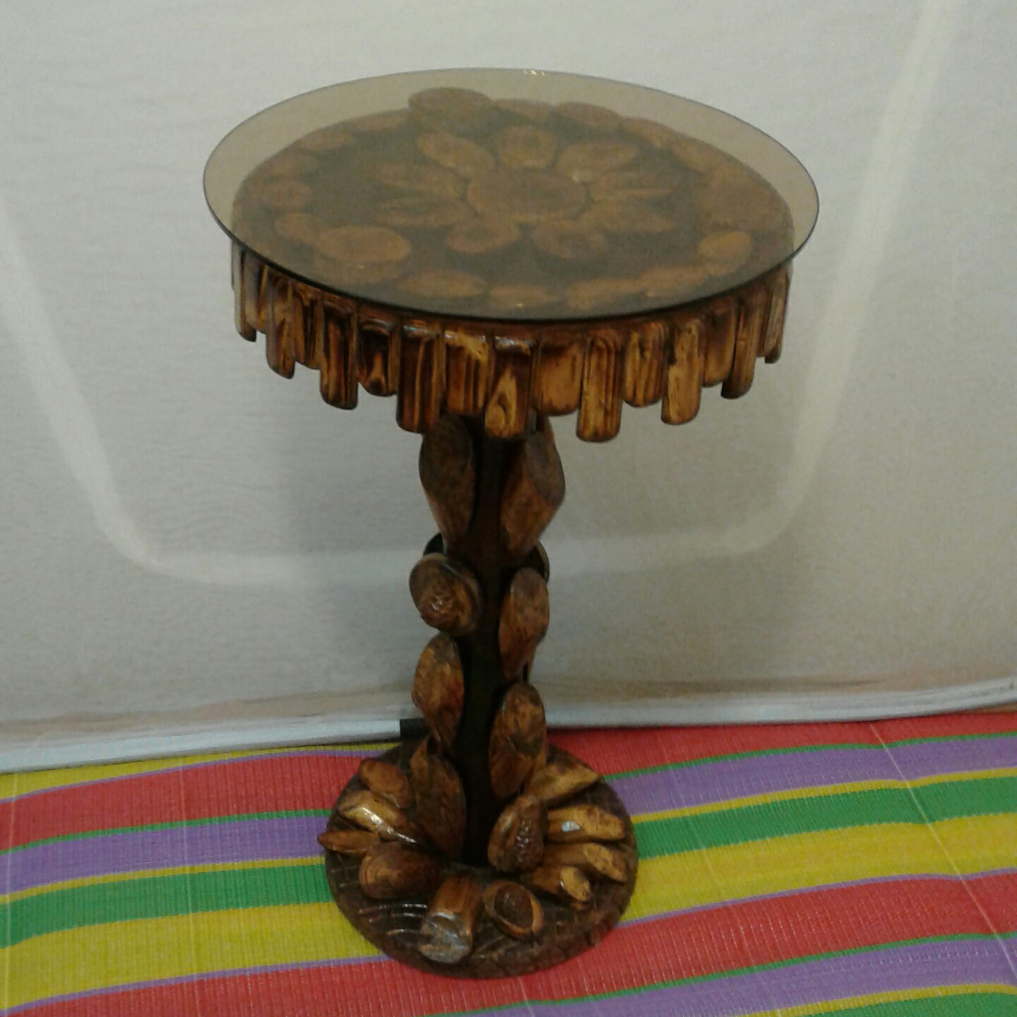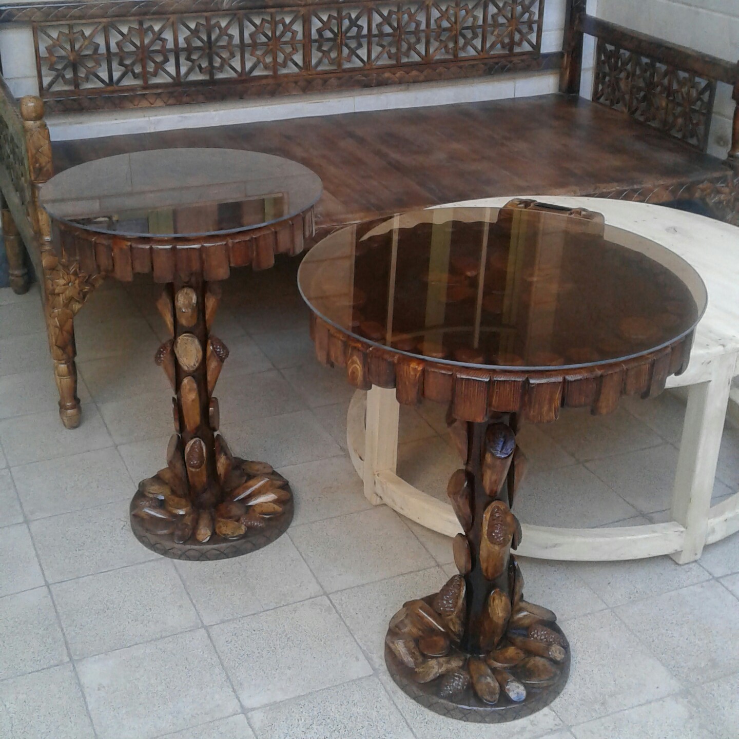 میز خاطره بزرگ چوبی رنگ پلی استر قطر شیشه 65 سانت مبلمونسرا مدل 218057