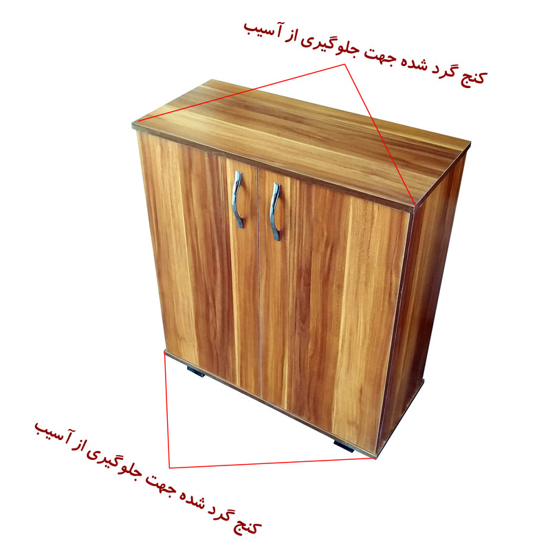 کنجهای پخ دار و گرد شده جهت جلوگیری از آسیب جنس تمام کار لترون درجه یک تعداد ۱۲ تا ۱۶ جفت کفش جای میگیرد یراق آلات درجه یک لولا آرامبند نوار لبه های کار پی وی سی جنس کار لترون ضد خش دستگیره فلزی