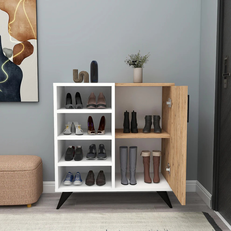 جاکفشی مدل IKE658 جنس روکش از ملامینه میباشد و دارای یک عدد درب با لولای با کیفیت و چهار طبقه در سمت چپ کالا و دو طبقه در داخل درب میباشد و این کالا از استحکام و مقاومت بالایی برخوردار است و در رنگ بندی های زیبا و شکیل میباشد.
