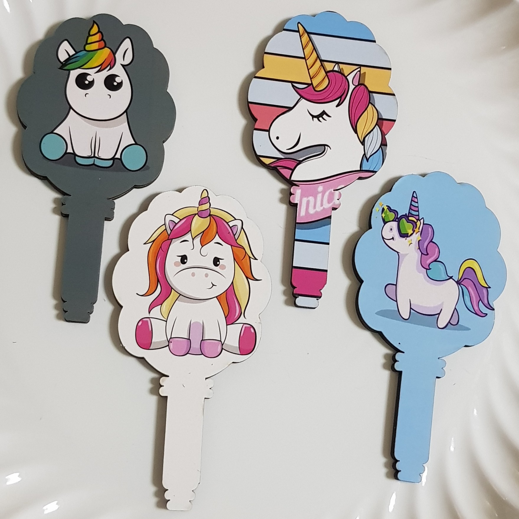 آینه دسته دار فانتزی طرح یونیکورن آینه آرایشی آینه کیفی مبلمونسرا مدل 263088