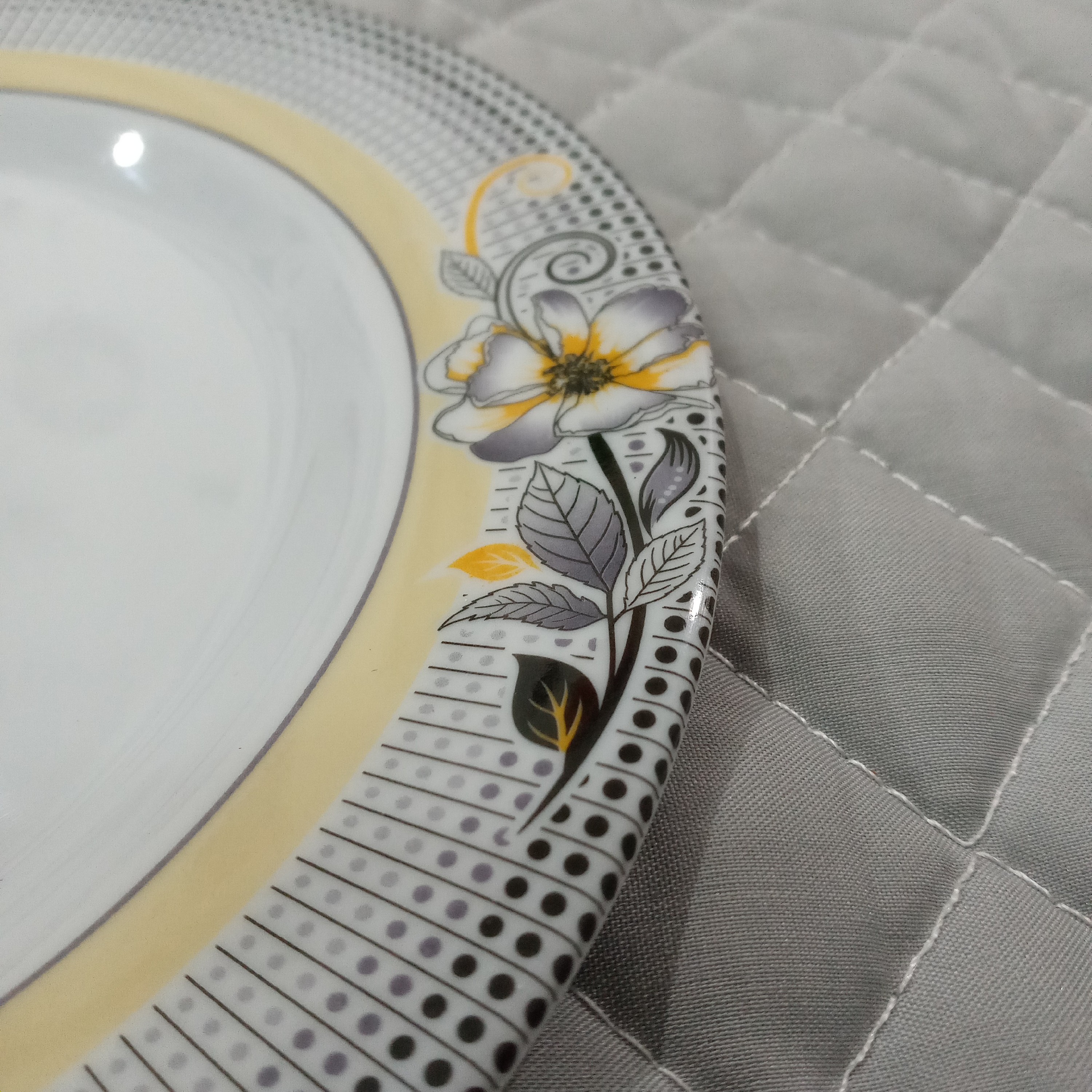 سرویس ۳۹ پارچه ملامین گرد صنایع تولیدی شیرکوه ملامین یزد دارای استاندارد مواد درجه یک رنگ طوسی مارک اصلی ملامین یزد