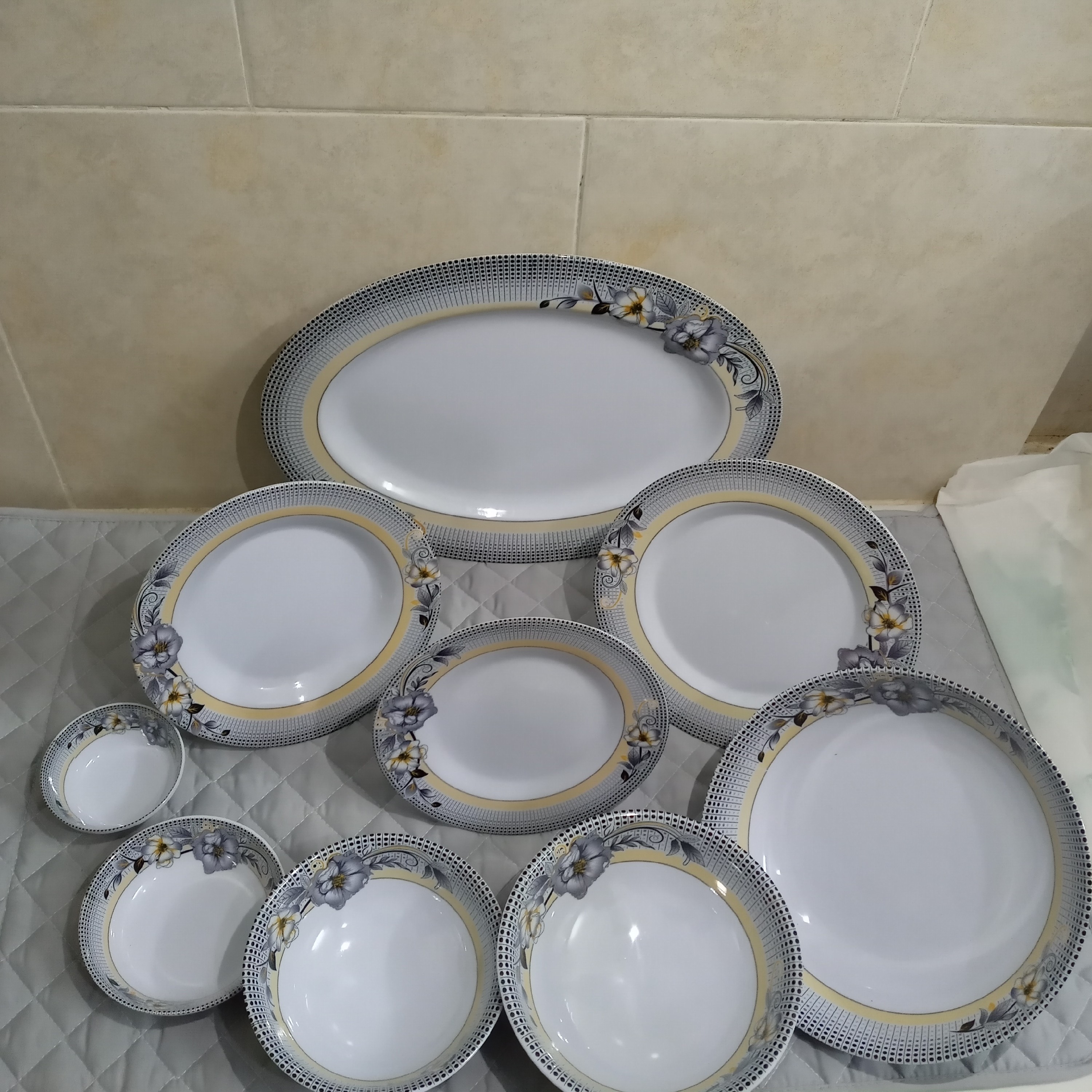 سرویس 39 پارچه ملامین پارچه ملامین گرد صنایع تولیدی شیرکوه ملامین یزد دارای استاندارد مواددرجه یک رنگ طوسی مارک اصلی مبلمونسرا مدل 290649