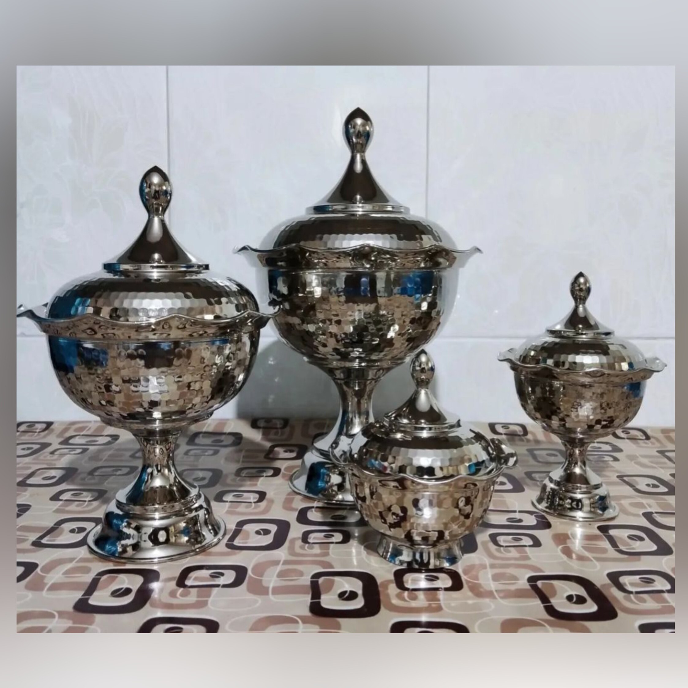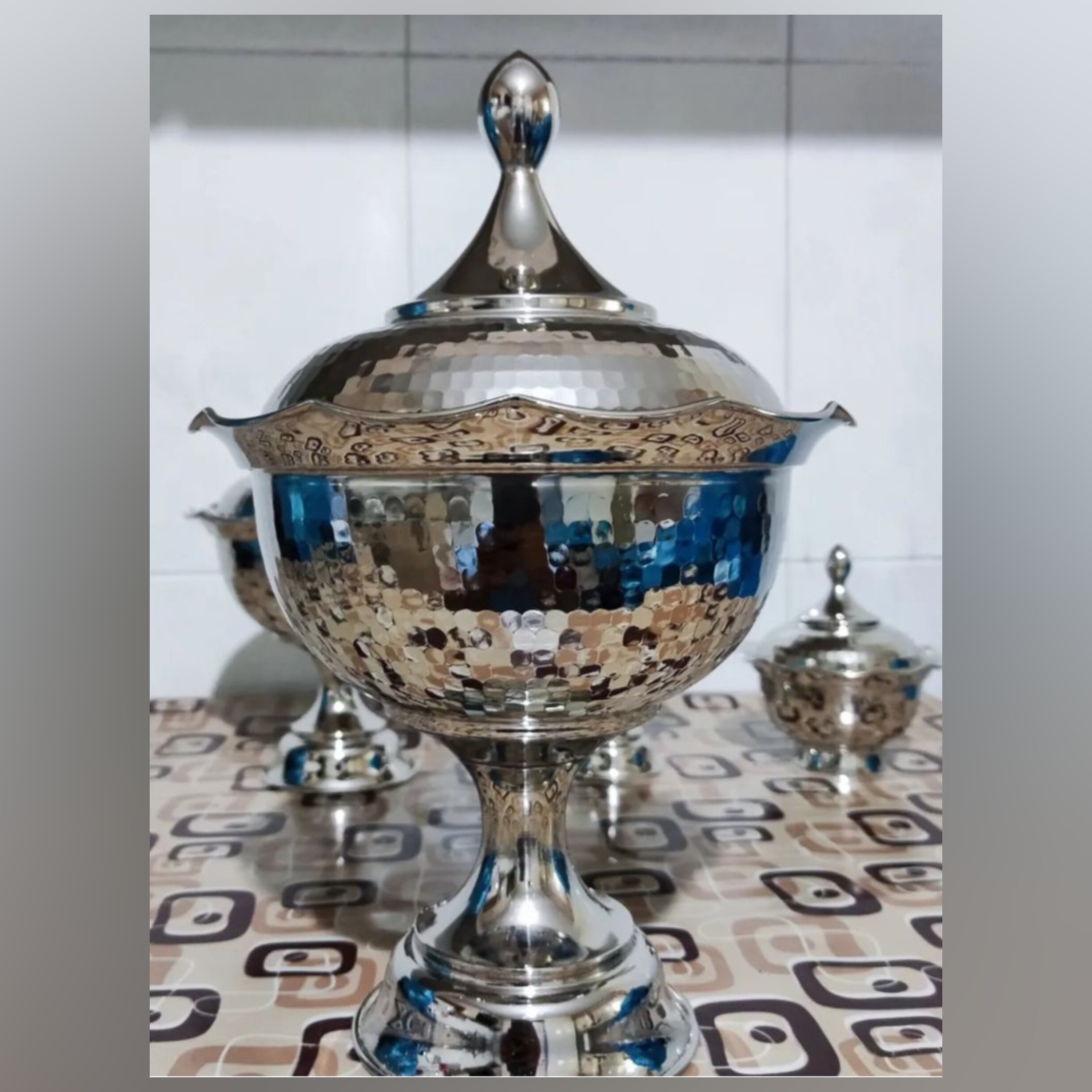 آجیل خوری پایه دار درجه یک کروم و چکشی ارتفاع : ۲۷سانتی متر قطر : 18سانتی متر وزن : 545گرم