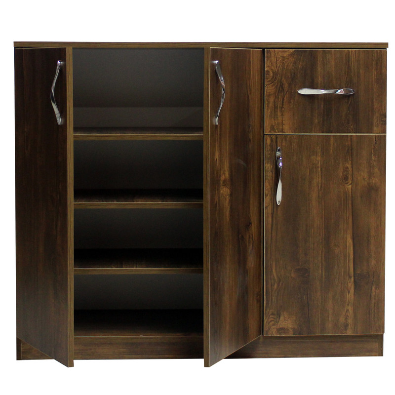 جاکفشی درب دار و کشو دار مدل IKE431 دارای دو درب و یک کشو جنس روکش از ملامینه ضد خش میباشد و دارای ریل ساچمه ای درجه یک و لولای آرام بند با کیفیت و در رنگ های زیبا و شکیل میباشد .