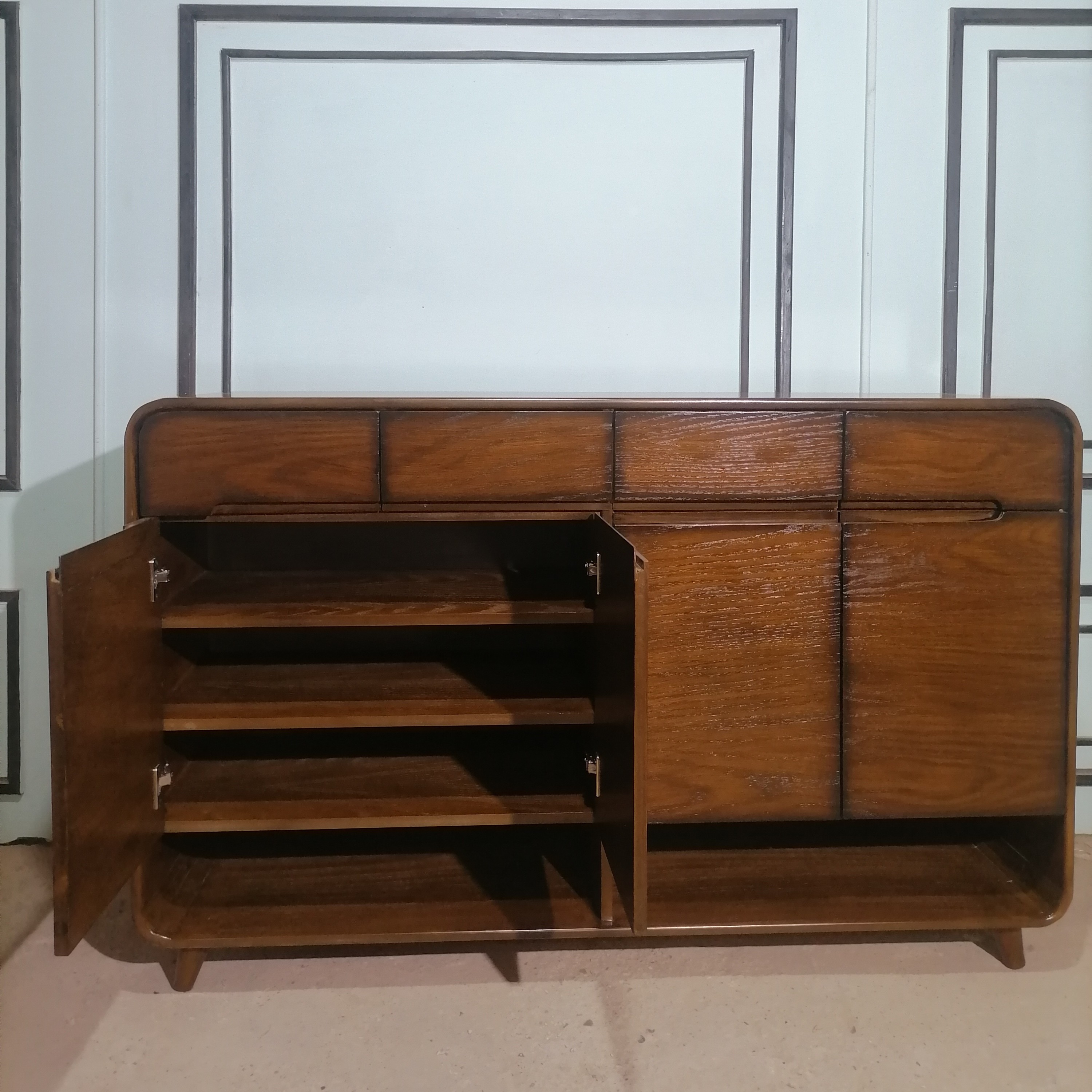 جاکفشی مدرن 4 در جادار قهوه ای سایز 140👞 این جاکفشی 4 در و 4 کشو داره که فوقالعاده جاداره و تقریبا 22 جفت کفش ظرفیت داره. همچنین تو کشو ها میتونید واکس و خرده ریزه هاتونو قرار بدید🥰 عملا این یعنی یه خونه منظم👌🏼 ابعاد جاکفشی: 140/90/35 متریال 🪵 پایه ها چوب روس ، بدنه ام دی اف روکش چوب بلوط رنگبندی کاملا دلخواه شماست 🌈 ارسال به سراسر کشور داریم 🚛 هزینه ارسال به عهده مشتری و به صورت میباشد .