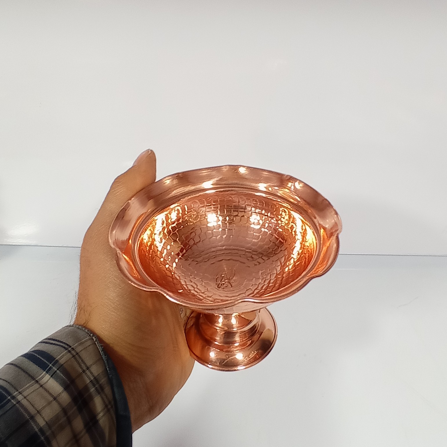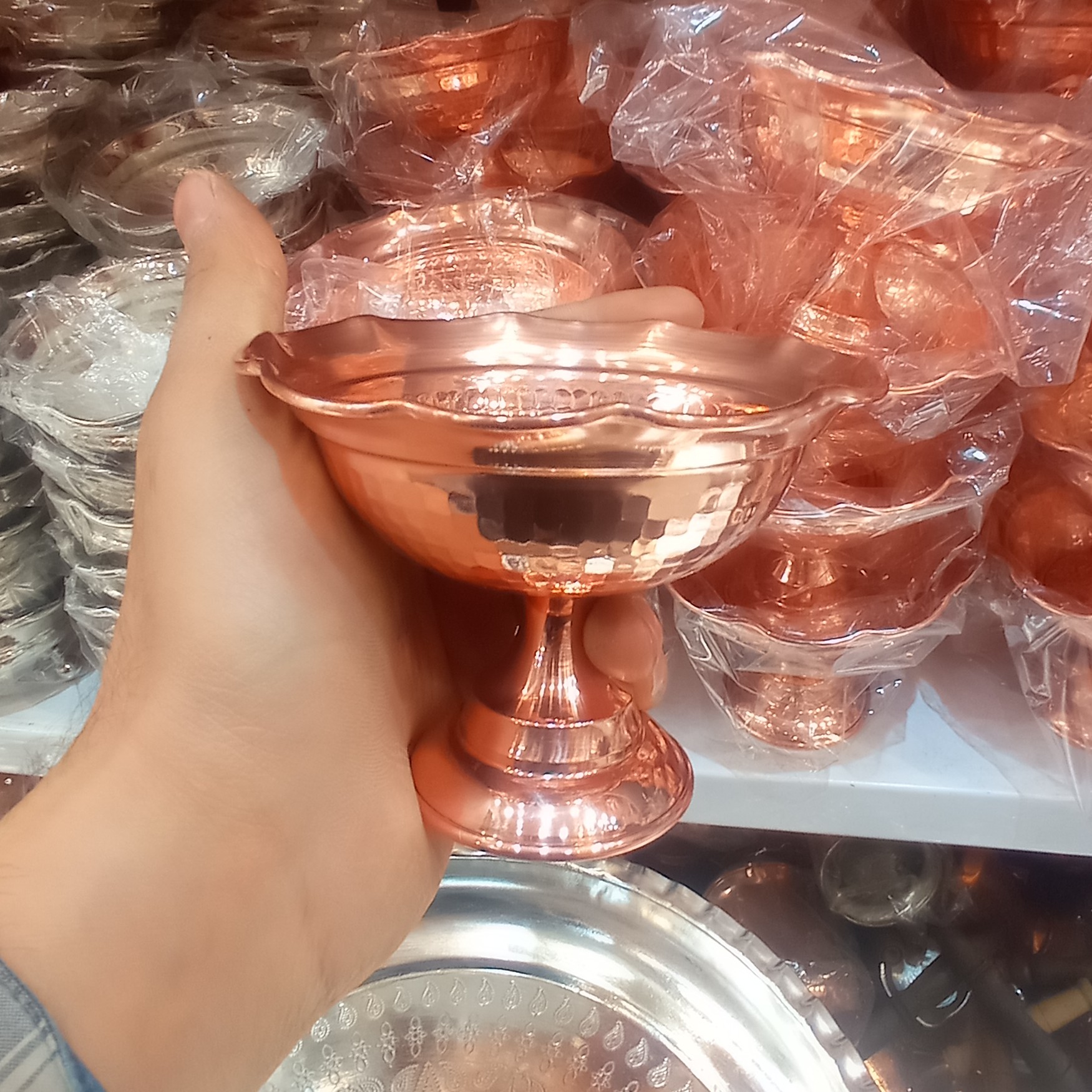 بستنی خوری مسی نانو رنگ ثابت فضلی زنجان درجه یک و ضخیم طرح دیبا قطر : ۱۰ سانتی متر ارتفاع : ۸ سانتی متر
