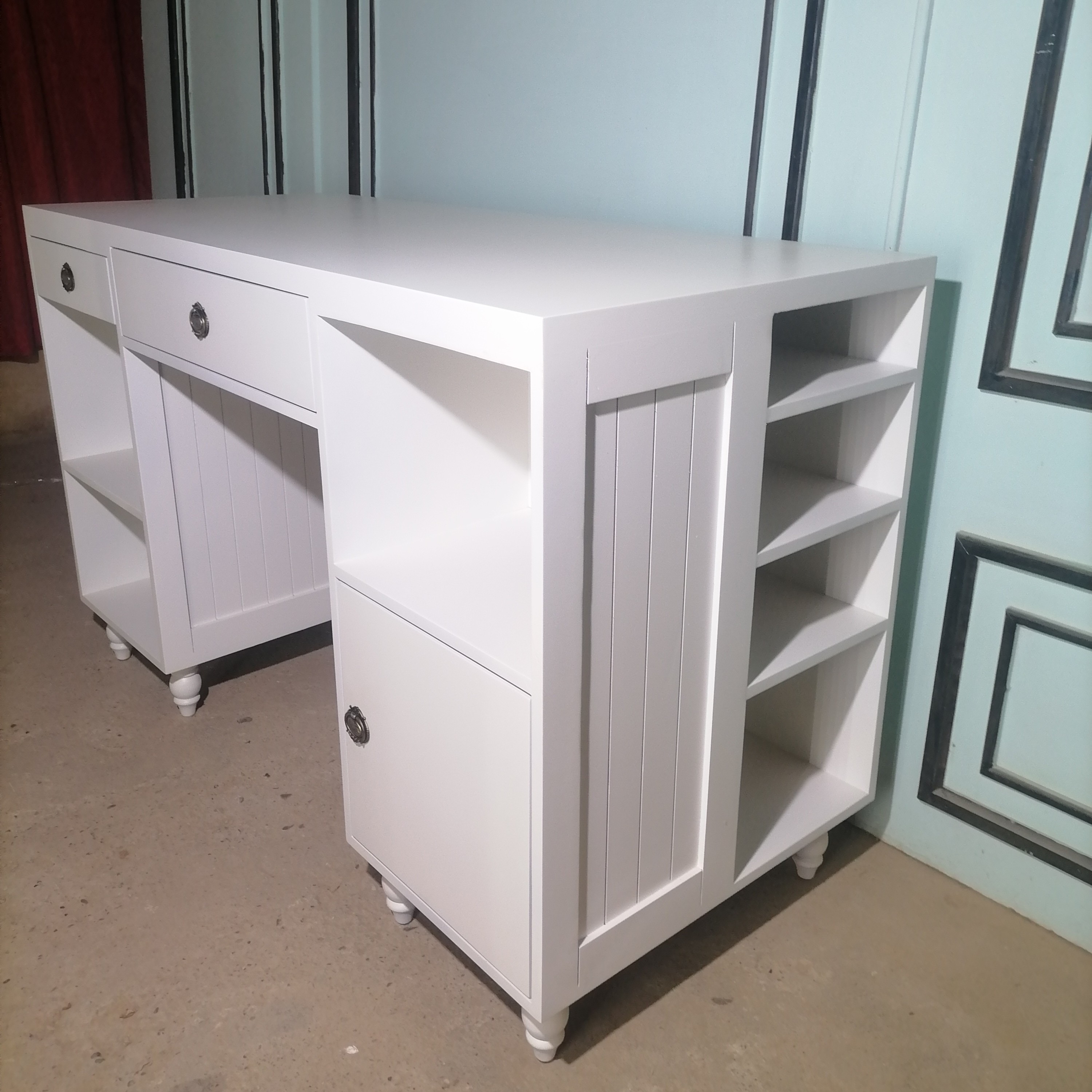 میزتحریر کتابخانه دار جدید جادار سفید سایز 140 این میزتحریر چندین کاربرد داره ✍🏻🥰 میزتحریر،میزمطالعه،میزطراحی و کتابخانه. به شدت جادار و مناسب تمامی سنین. ابعاد میزتحریر : 140.60.80 متریال 🪵 پایه ها چوب روس ، بدنه ام دی اف خام ،رنگ پوششی و پلی استر رنگ تصویر سفیده ولی رنگبندی کاملا دلخواه شماست 🌈 ارسال به سراسر کشور داریم 🚛 هزینه ارسال به عهده مشتری و به صورت میباشد