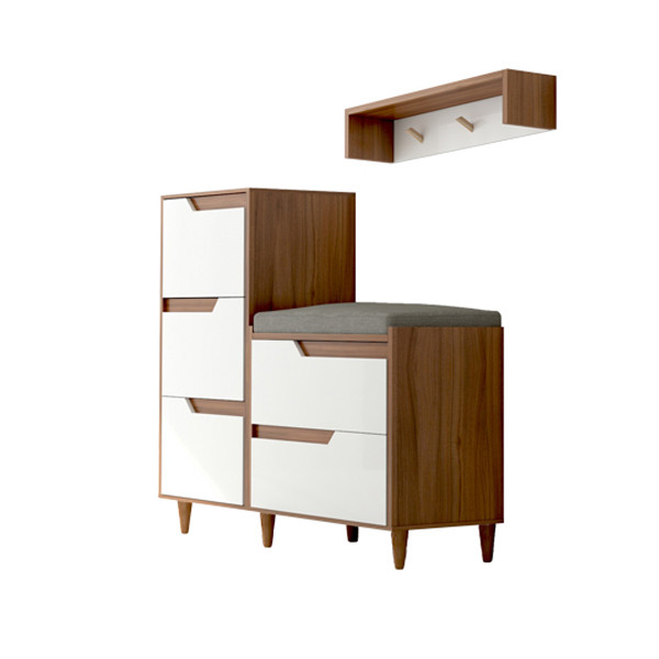 جاکفشی تمام ام دی اف کد S.R008 درسبک مینیمال طراحی شده است که دارای 5 باز شو بادستگیره تاچ و همراه باتقسیم بندی طبقات داخلی جهت انواع کفش می باشد. کلیه دستگیره های طراحی شده در محصولات فرنیشیوم به گونه است که هیچگونه پیچ و دستگیره جداگانه ایی در آن به کار نرفته است .همچنین دارای نشیمن مجزا جهت سهولت در استفاده و باکس متصل به نشیمن با طبقه بندی داخلی استانداردمتناسب با انواع کفش می باشد. عرض این جا کفشی 120سانتی متر و ظرفیت آن 12 جفت کفش است.در طراحی این محصول از ابعاد متناسب با استاندارد نومی استفاده شده و با توجه به مدرن و مینیمال بودن این محصول با انواع سبک های مختلف دکوراسیون منازل شما هماهنگ می باشد.