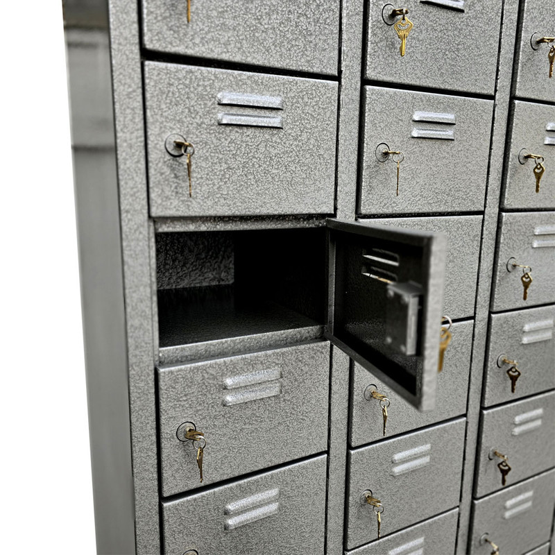 جاکفشی دارای 33 کمد قفل دار اعلا دارای ورق ضخیم و سنگین در ابعاد 194*86*35 می باشد. این کمد دارای رنگ پودری میباشد و تا 33 کفش را میتواند در خود جا دهد.