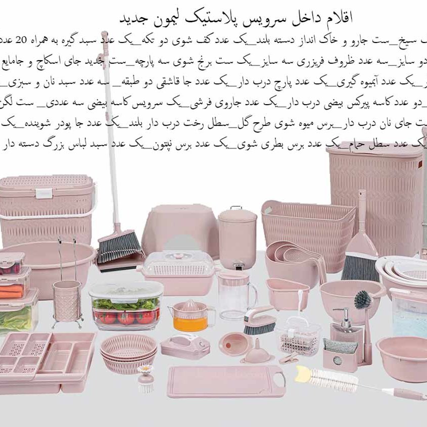 سرویس پلاسکو لیمون 58 پارچه و 49 پارچه طرح بافت رنگبندی سفید طوسی وانیلی صورتی پاستیلی و صورتی کرپ قیمت تخفیف خورده گذاشتیم و به صورت خرده ای هم قابل فروش هست و ارسال فقط با باربری تا هزینه ارسالتون خیلی کمتر بشه