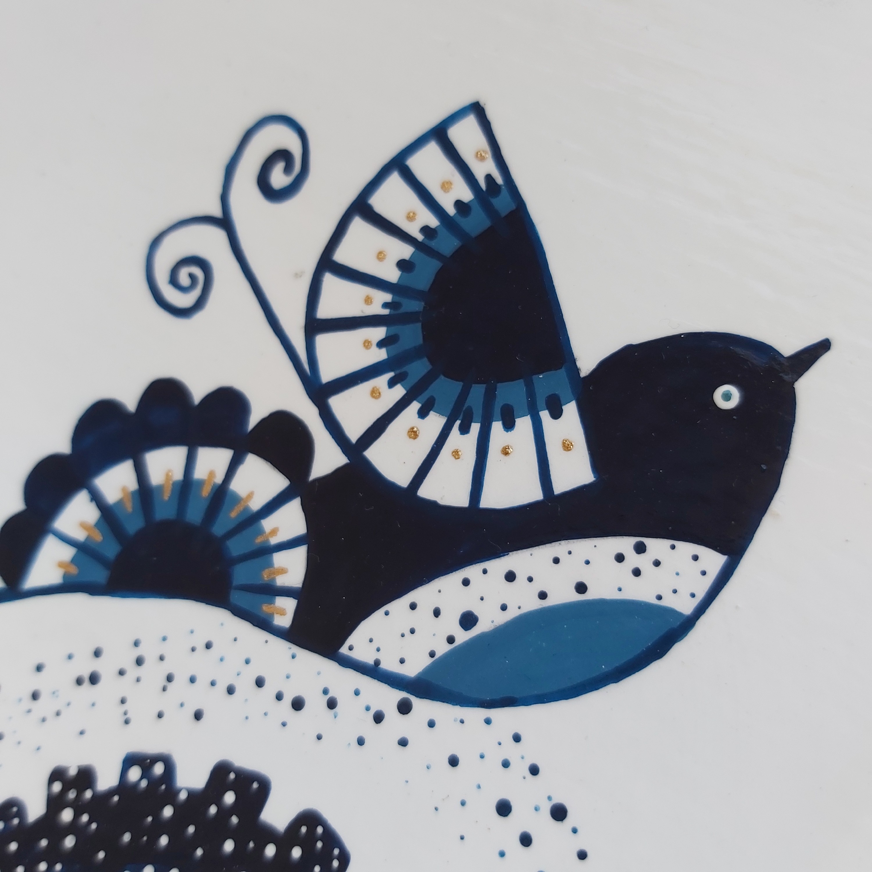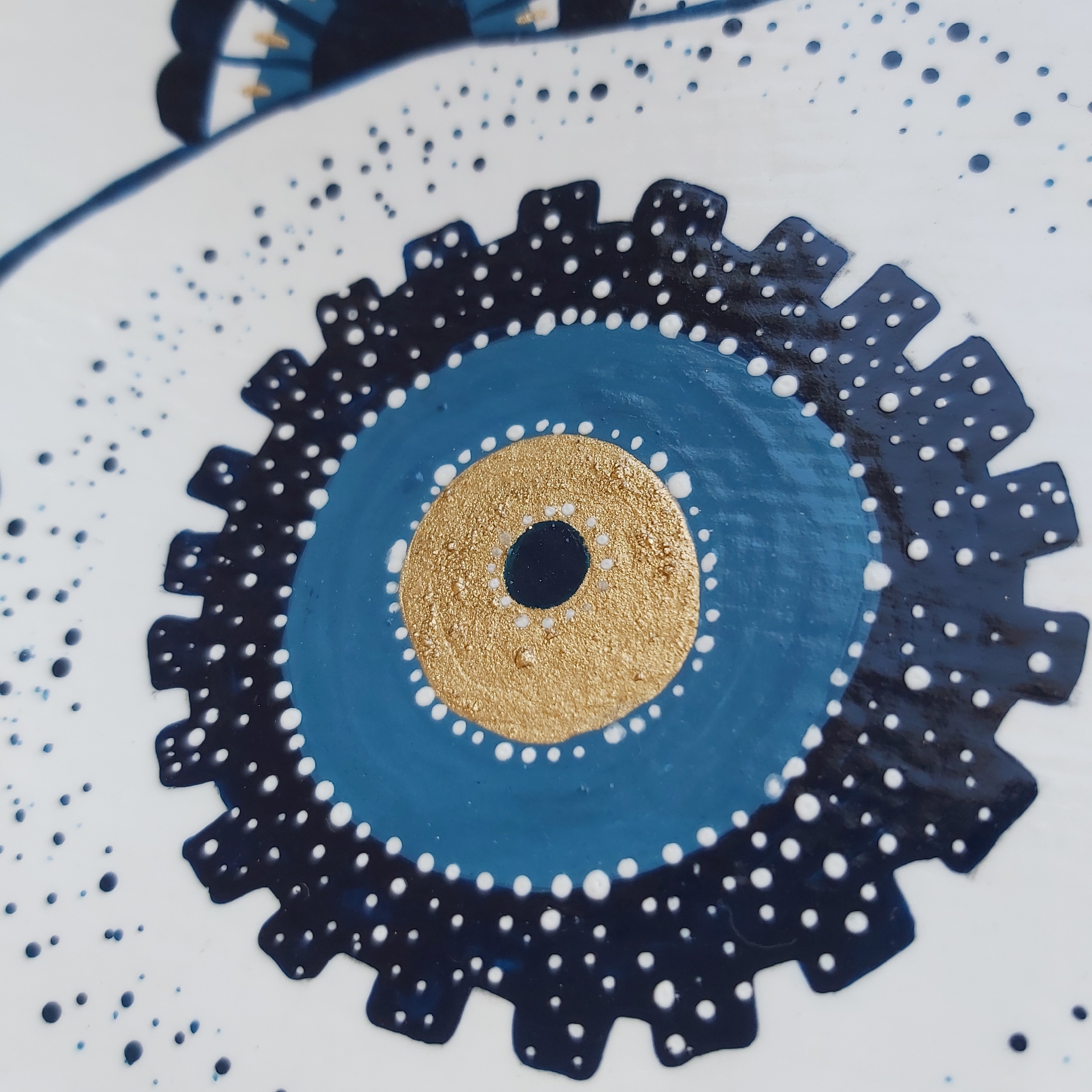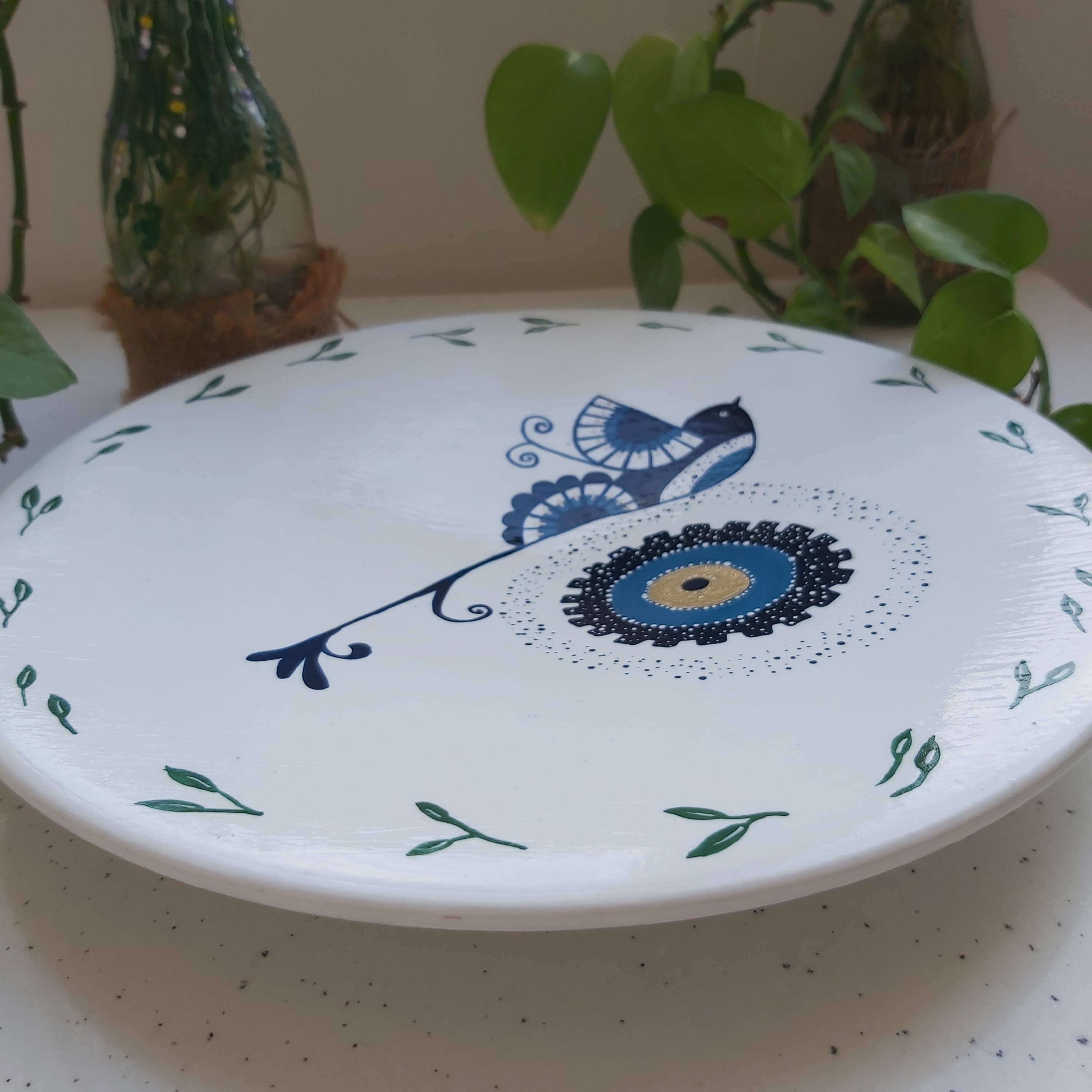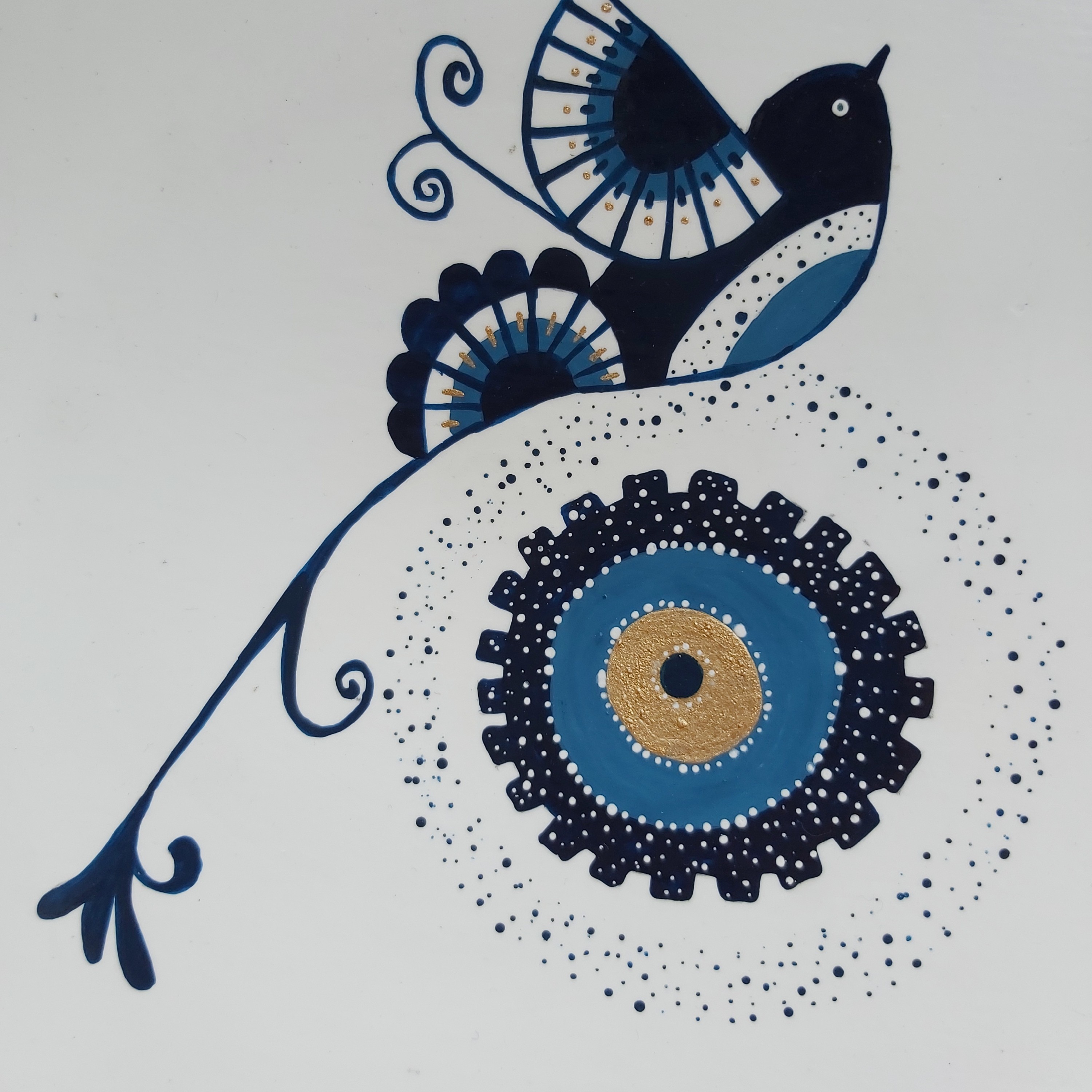 بشقاب دیوارکوب قطر 25سانتیمتر طرح پرنده چشم نظر طراحی شده با دست و رنگ اکریلیک قابل نصب آسان و شستشو با اسکاج نرم مبلمونسرا مدل 276091