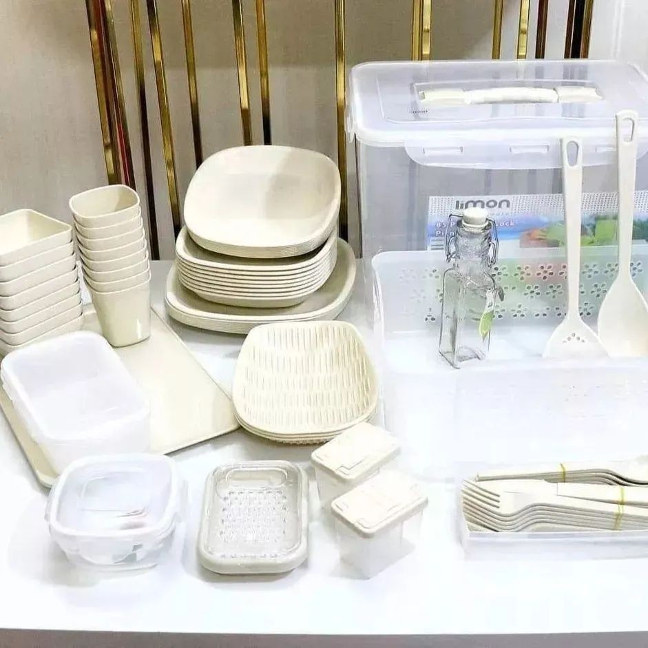 ✔️از واجبات سفر بسیار جمع و جور و با کیفیت و کار راه انداز پک مسافرتی یا پیکنیک لیمون تمام لوازم مورد نیاز پیکنیک داخل 1 پک😎 در سه رنگ : کرپ-کرم-طوسی ✅ ست 6 نفره که شامل 60 پارچه مطابق متن زیر است : 6 کارد-6 چنگال-6 قاشق-6 پیاله-6 پلوخوری-6 خورشت خوری-6 پیش دست-6 لیوان-3 جانونی-1 دیس-1 جاقاشقی-1 سبد-1 نمکپاش-1 کفگیر-1 ملاقه-1 فریزری-1سبدنان-1سبد ظروف