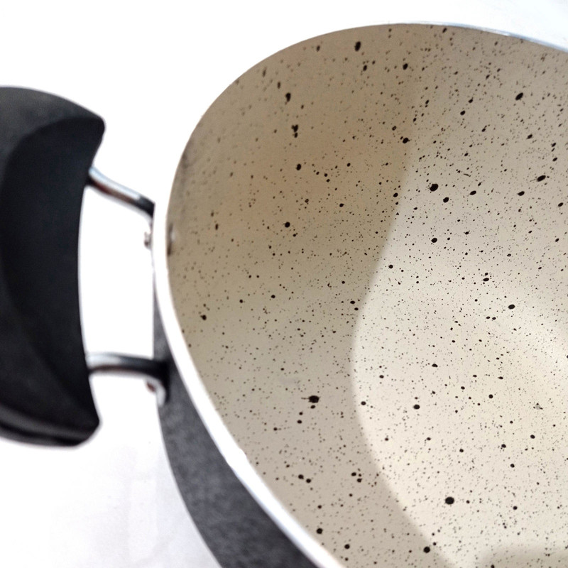 تابه های دارای یک پوشش بسیار مقاوم، غیر متخلخل و بی ضرر هستند. در صورتی که این پوشش هیچ گونه آسیبی ندیده باشد تابه های برای پخت و پز و نگهداری انواع غذاها، حتی خوراکی های بسیار اسیدی بی خطر هستند. این کالا دارای نشان استاندارد ایران بوده و در ساخت آن از بهترین مواد اولیه استفاده شده است. یک تابه اصل به هیچ وجه دچار زنگ زدگی نمی شود. از مزایای این تابه می توان به موارد زیر اشاره کرد: هسته داخلی تابه باعث می شود حرارت با سرعت و به طور یکنواخت پخش شود. سطح تیره گرانتیت باعث جذب سریع گرما و کاهش زمان پخت و پز می شود به خاطر سطح صاف و براق مواد پوشاننده، تمیز کردن این تابه ها بسیار آسان است. پوشش داخل تابه، ماندگاری بالاتری نسبت به سرامیک دارد. اگر هنگام استفاده به درستی مراقبت شوند، طول عمر بالایی دارند. به دلیل سنگی بودن پوشش استفاده شده ، گرما به صورت یکپارچه در ظرف پخش می شود و غذا در آن دیرتر از یک ظرف معمولی می سوزد. چون گرانیت ماده ای طبیعی است، طعم غذا را تغییر نمیدهد. نسبت به تابه سرامیکی سبک تر هستند. به راحتی می توانید آن ها را داخل ماشین ظرف شویی قرار دهید. قیمت مقرون به صرفه در برابر کیفیت بسیار بالای تابه از دیگر مزایای بارز آن محسوب می شود. بنابراین از خرید تابه با قیمت های پایین و مشک صرف نظر کنید. این گونه ظروف از دوام بالایی برخوردار نیستند و رش آن ها به شدت نازک می باشد. محصولات غیراستاندارد در مقایسه با نمونه های استاندارد که رش ضخیم دارند بسیار زودتر فرسوده شده و کیفیت خود را از دست می دهند. پس از این افت کیفیت و از دست رفتن رش خطرات ناشی از عناصر فلزات سنگین چندین برابر خواهد شد.