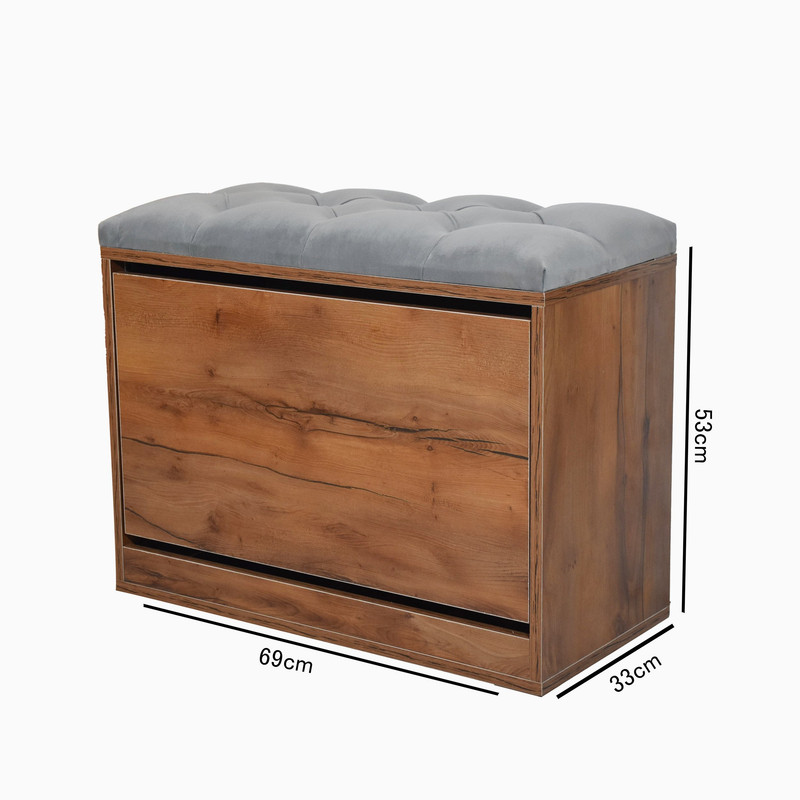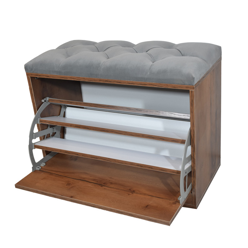 این مدل جاکفشی با جنس چوب ملامینه پویا و رنگ چوب ثابت بوده و تنوع رنگی این کالا رنگ پارچه مبلی قسمت نشیمن با مدل رویه کوبی چستر (لمسه ) در نظر گرفته شده است. مدل درب داشبوردی با یراق 3 طبقه برای مصرف کننده گنجایش 9 جفت کفش را فراهم کرده و به مصرف کننده این امکان را میدهد تا به راحتی از نشیمن مبلی این مدل استفاده کند. ابعاد این کالا ثابت است و در قسمت مشخصات فنی کالا لحاظ شده است .