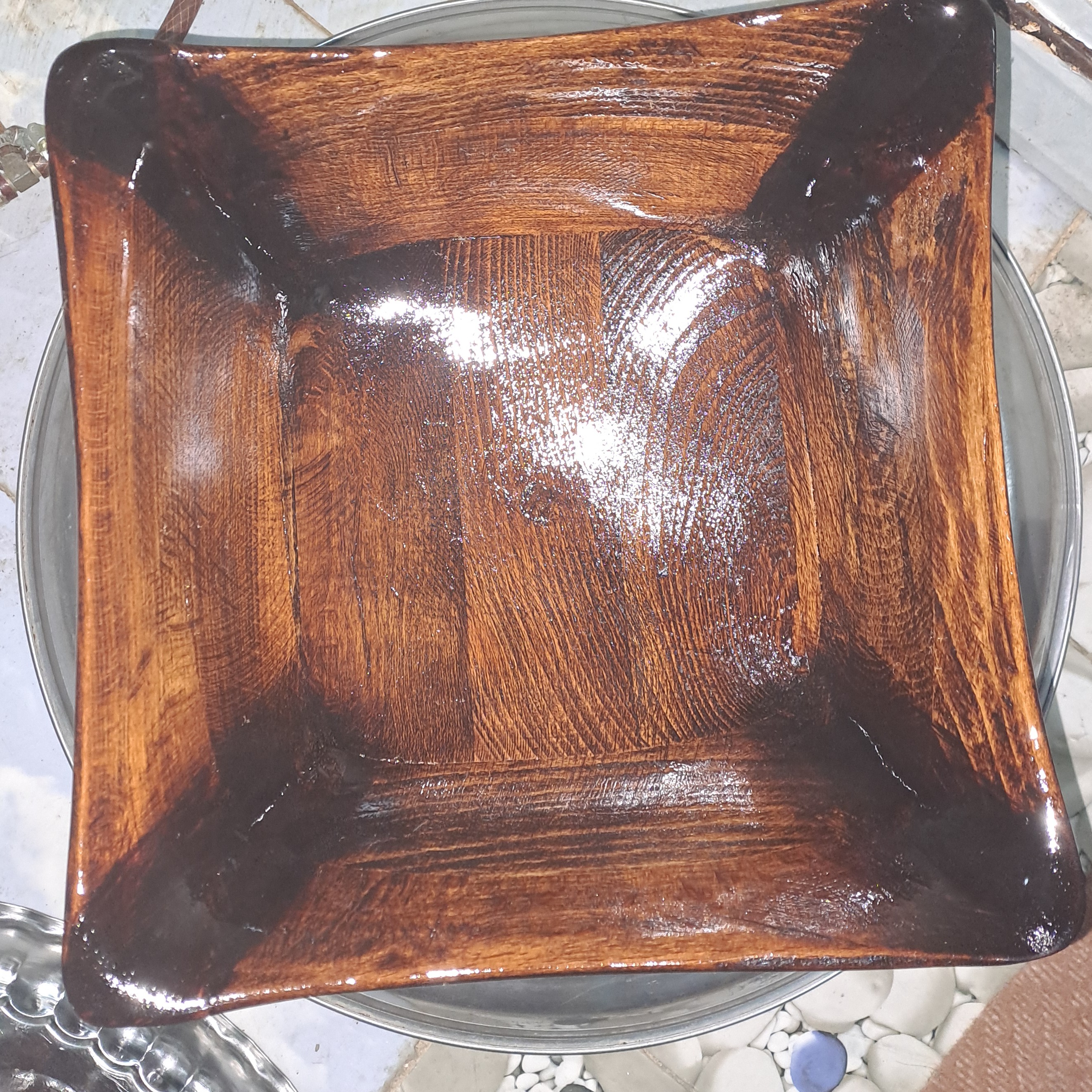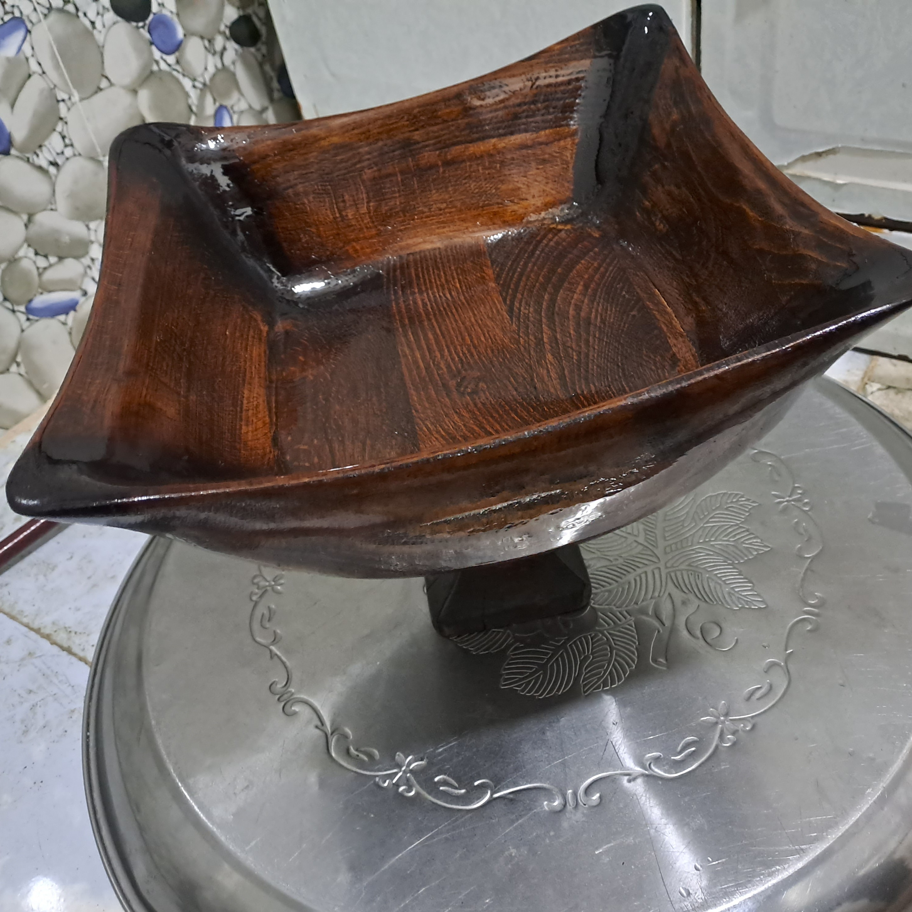 جا میوه ای به همراه ۶ عدد اجیل خوری که از چوب گردو ساخته شده بدون دخالت ماشین الات صنعتی ، یعنی کاردست میباشد