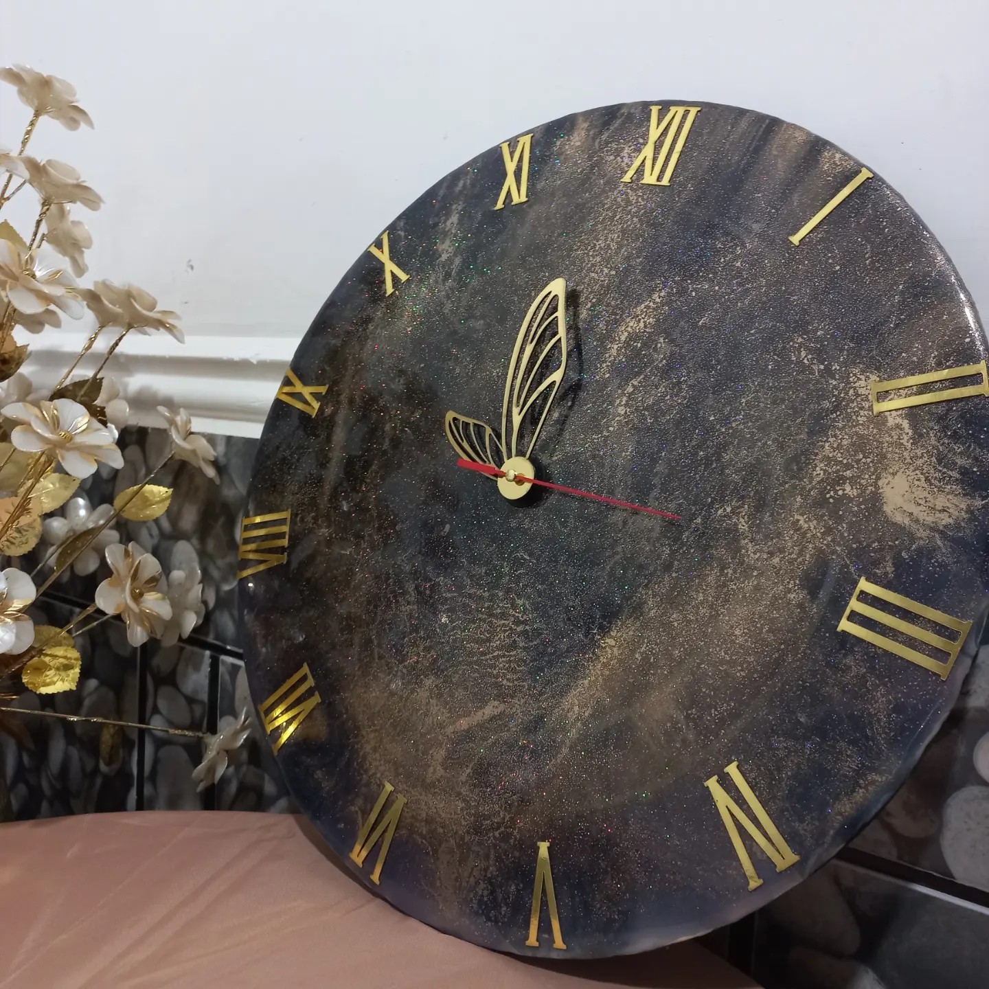 ساعت رنگ مشکی و طلایی قطر کار40 سانت موتور آرام گرد مبلمونسرا مدل 239499