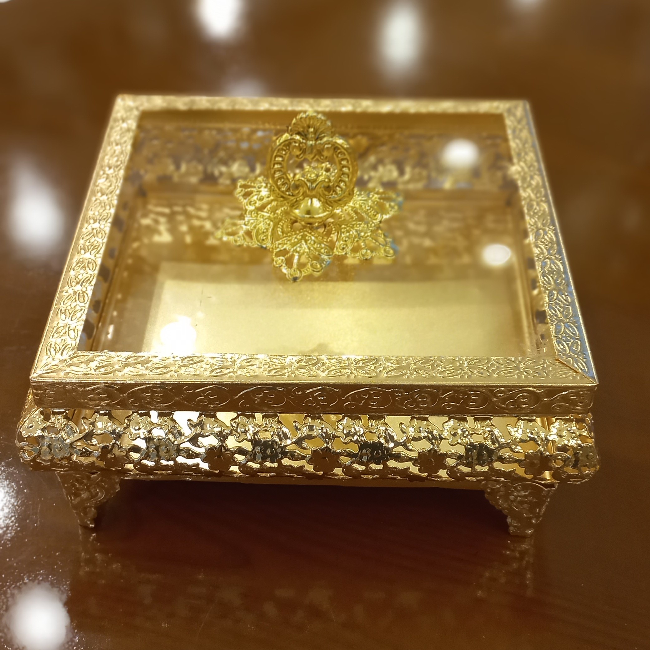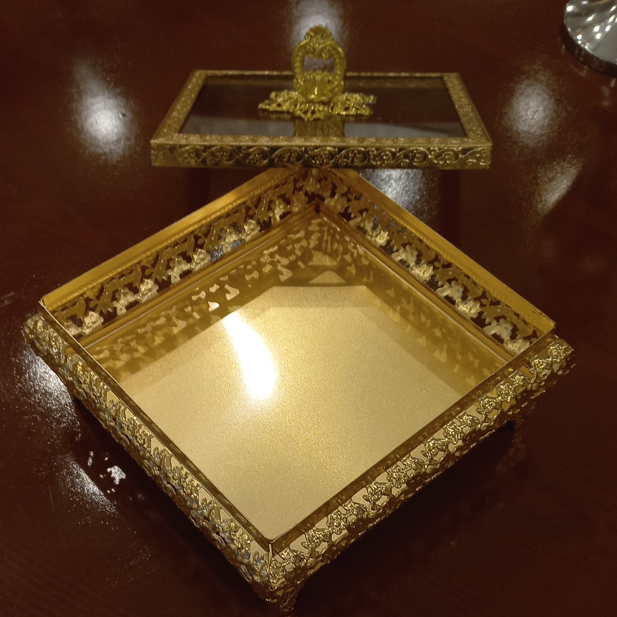 شکلات خوری مربع شکم دار طلایی کیفیت عالی شیک و زیبا در سه رنگ طلایی و نقره ای و آنتیک موجود میباشد