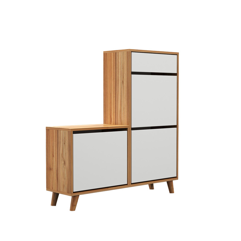 جاکفشی داشبوردی 3 درب نشمین دار طرح ساخت شرکت چوبجار یکی از کاربردی ترین انواع جاکفشی برای آپارتمان ها و راهروی منزل شماست. این جاکفشی با اشغال فضای حداقلی، حداکثر میزان کفش را در خود جای میدهد. ظرفیت این جاکفشی 12 جفت کفش است. یراق بکار رفته در این جاکفشی از بهترین جنس و با بالاترین تکنولوژی های روز تولید و مونتاژ شده است.