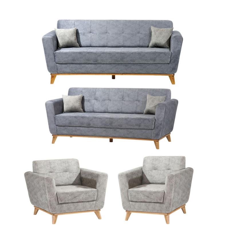 توجه!!!(قبل از ثبت سفارش لازم است بدانید که رنگ کاناپه های سه نفره و مبل تکنفره را میتوانید شما عزیزان با انتخاب رنگ و ثبت سفارش انتخاب کرده تا باهم ست شود.) مدل یک مبل راحتی 7 نفره . این کالا شامل یک عدد کاناپه 3 نفره و یک عدد کاناپه 2 نفره و دوعدد مبل 1 نفره میباشد.طراحی مینمال و ساده مدل در عین سادگی زیبایی بسیاری به منزل شما میبخشد چوب استفاده شده از جنس چوب نراد روس با کیفیت در پایه ها و دیزاین ظاهری مبل، کلاف چوب روس نراد خشک شده، اسفنج های 35 کیلویی ویژه برای نشیمن، اسفنج 30 کیلویی برای تکیه گاه و اسفنج 30 کیلویی برای دسته های مبلمان، باعث شده تا مدل عمر طولانی و راحتی فوق العاده ای را به شما هدیه دهد.. پایه های مبل از جنس چوب روسی برای دیزاین به کار برده شده، زیبایی خیره کننده و دو چندانی به مبل راحتی بخشیده است. هر دو کاناپه ، دارای فضای بسیار مناسب و کافی برای استراحت میباشد.دوخت بسیار با کیفیت و زیبا در کنار مغزی دوزی هایی که با ظرافت خاصی در همه جای این مدل به چشم میخورد، حاصل طراحی مدرن و خلاقانه ی طراحان مجموعه میباشد.یکی از مهمترین نکات در طراحی و تولید مدل ، طبی بودن تکیه گاه و نشیمن آن است به طوری که برای کسانی که مشکلات ستون فقرات دارند بسیار راحت و مناسب است. مبل یک محصول شیک و کلاسیک با طراحی زیبا و جذاب است که به آسانی میتواند جزو مبلمان مورد علاقه شما باشد. این مبل 7 نفره است و شامل دو کاناپه، دو تا مبل تک نفرهاست.پایههای این مبل کاملاً از چوب ضد رطوبت ساخته شدهاند و کلاف داخلی آن نیز از چوب روس نراد ساخته شده است. دو پایه در وسط کاناپه این محصول مجهز شده است تا ثبات بیشتری برای کاناپه ایجاد کنند. در کل، مبل یک محصول بسیار راحت و شیک است که میتواند تزئینی عالی برای منازل و اتاقهای مختلف باشد این ست مبلمان یک سرویس کامل بوده و برای خرید جهیزیه و زیبایی بیشتر دکوراسیون منزل شما پیشنهاد می شود