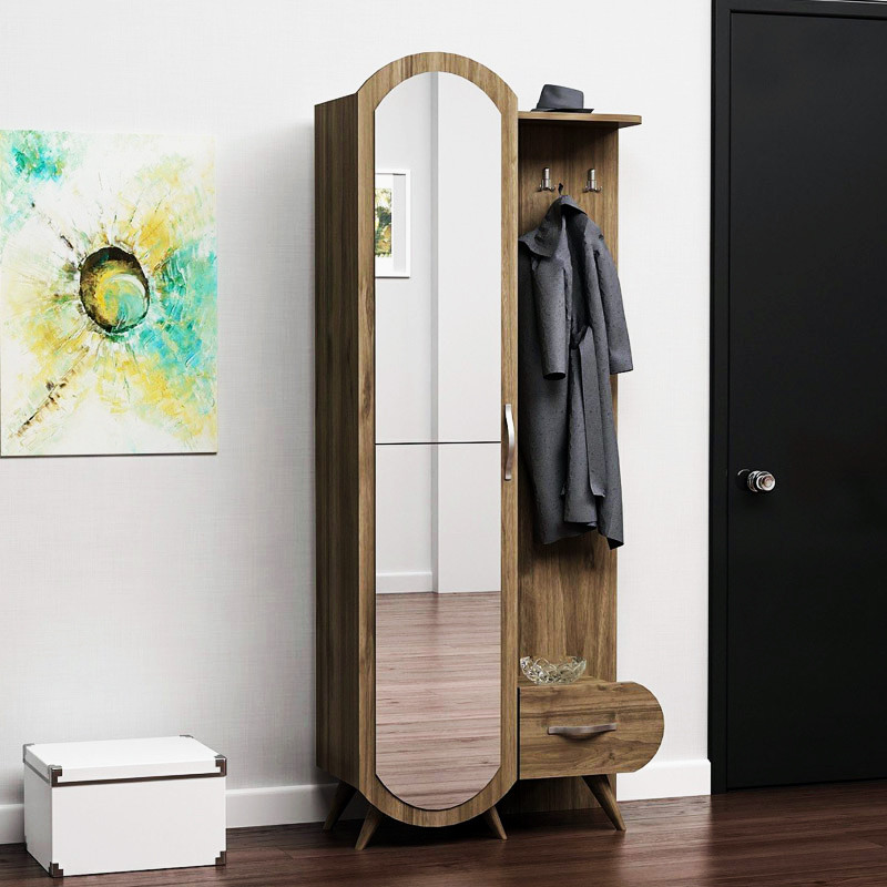از آنجا که بیرون از منزل همواره آلودگی هایی غیر قابل مشاهده بوده و هست. کیف و لباس و کفشها به طور ناخودآگاه با زمین و درب و دیوار و ... در تماس هستند، این موارد میکروارگانیسمهای زیادی با خود همراه دارند، مطالعات نشان میدهد که حتی در سطوح خشک نیز میکروبها مدتهای زیادی زنده باقی میمانند. بنابراین کیف و کفش و لباس های بیرونی نباید به هیچ وجه مستقیم به محل استراحت سرایت کنند. محل استراحت ما حریم شخصی است و همانطور که اجازه نمیدهیم افراد غریبه وارد حریم شخصیمان شوند، میکروبها را هم نباید وارد حریم شخصیمان کنیم. در این راستا یک سازه کمدی شامل جاکفشی و رخت آویز بسیار شیک و کمجا طراحی کرده ایم که میتواند در دروازه ورودی آپارتمان فضای مناسبی برای کیف و کفش و لباسهای شما به وجود آورد. جاکفشی رخت آویز مدل DLF76L از جنس لترون درجه یک ساخته شده. همه امکانات و اکسسوری های قابل تعبیه شدن در کمد را می توانید در عکس ها مشاهده بفرمائید، لطفا برای انتخاب رنگ دلخواه نمونه رنگ در تصاویر را بررسی کنید.