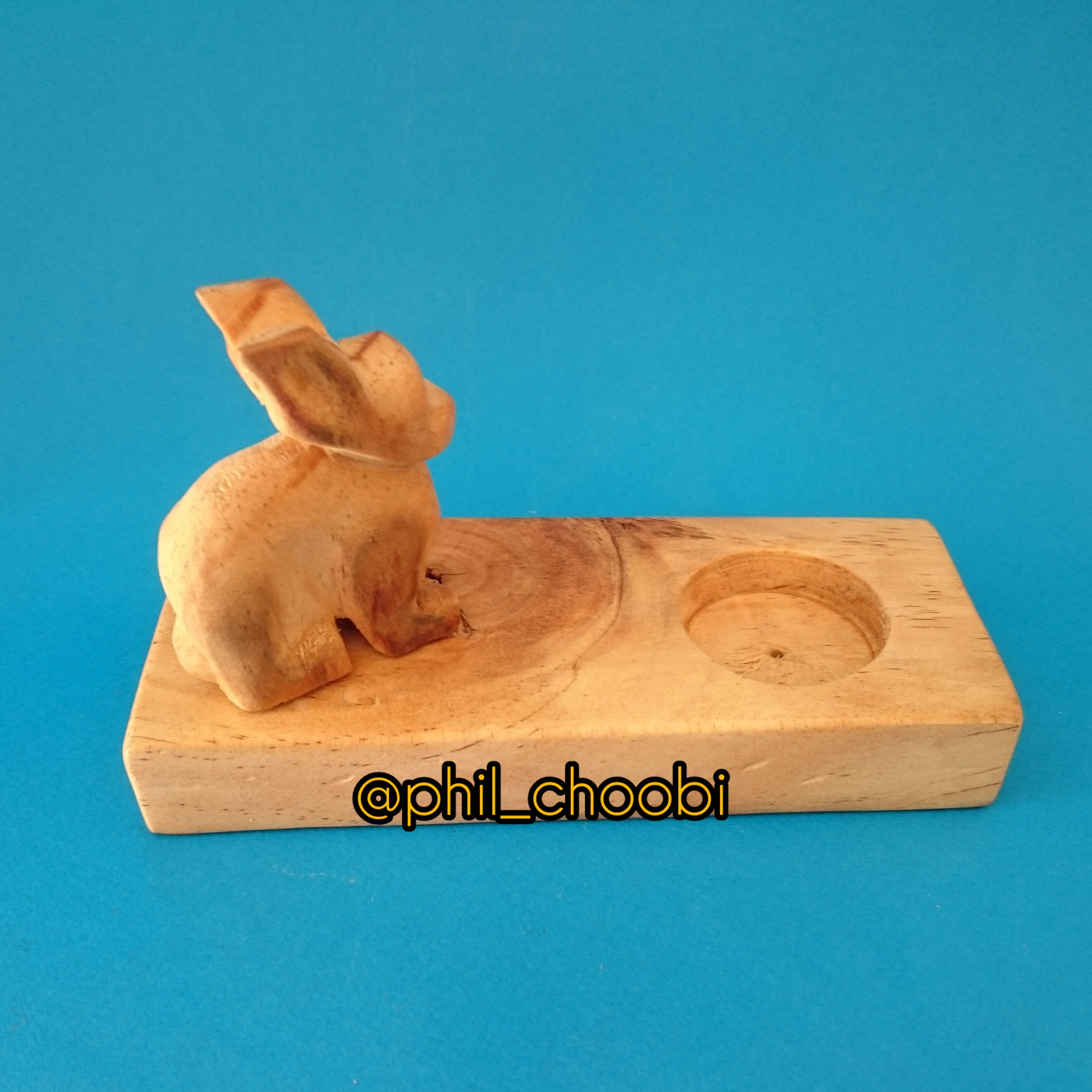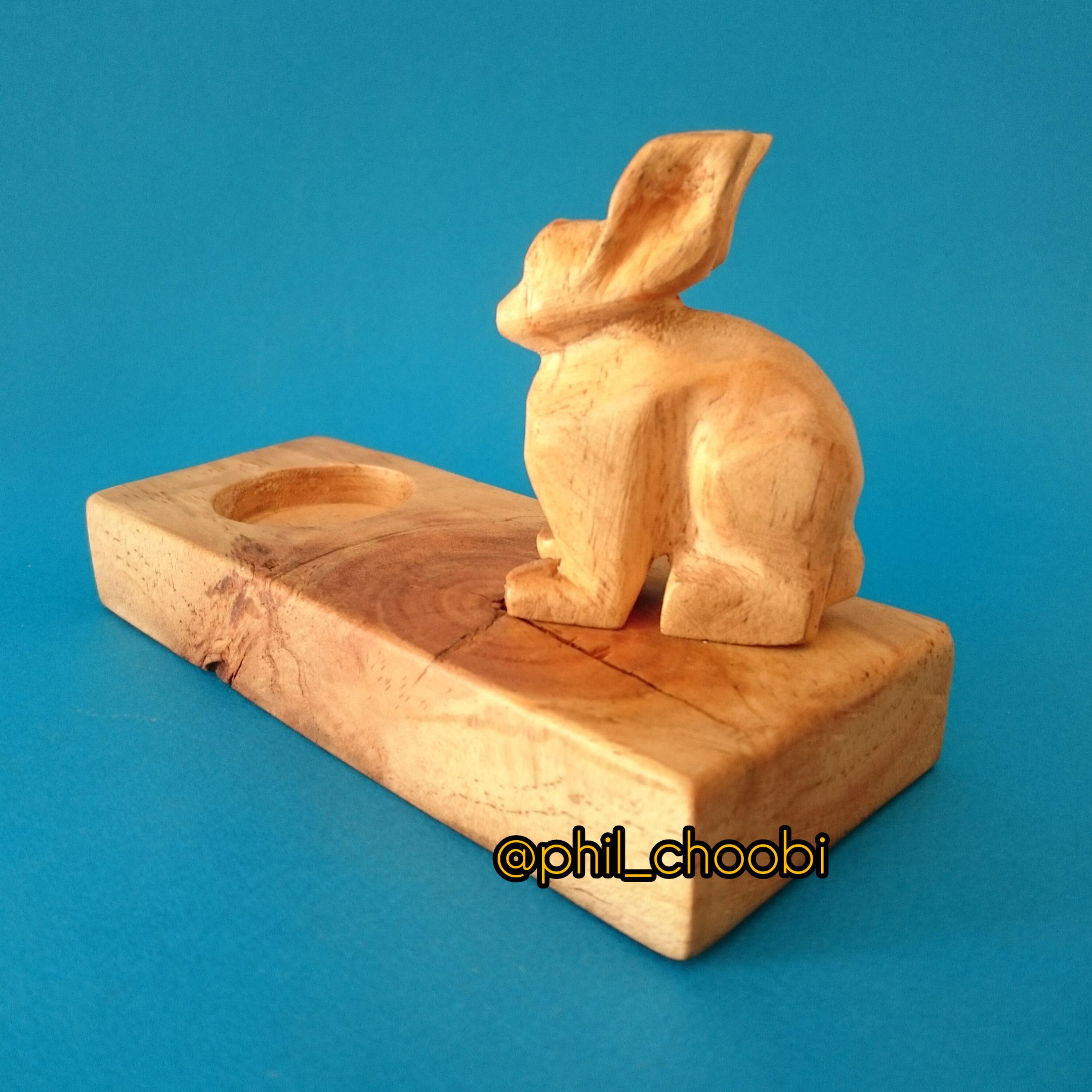 جا شمعی و جاعودی چوبی با مجسمه کوچک خرگوش ساخته شده از چوب و پوشش بوراماواکس ایتالیا