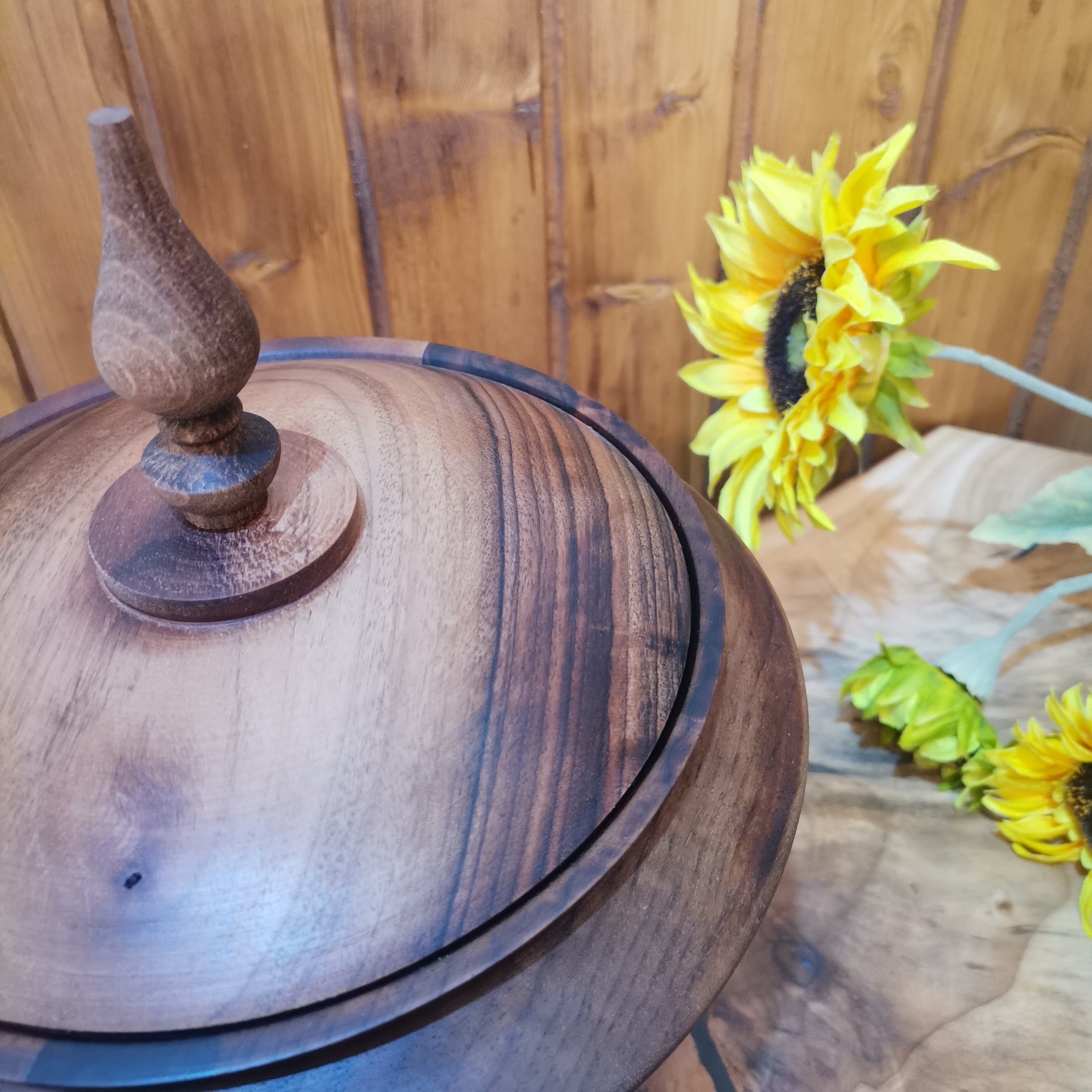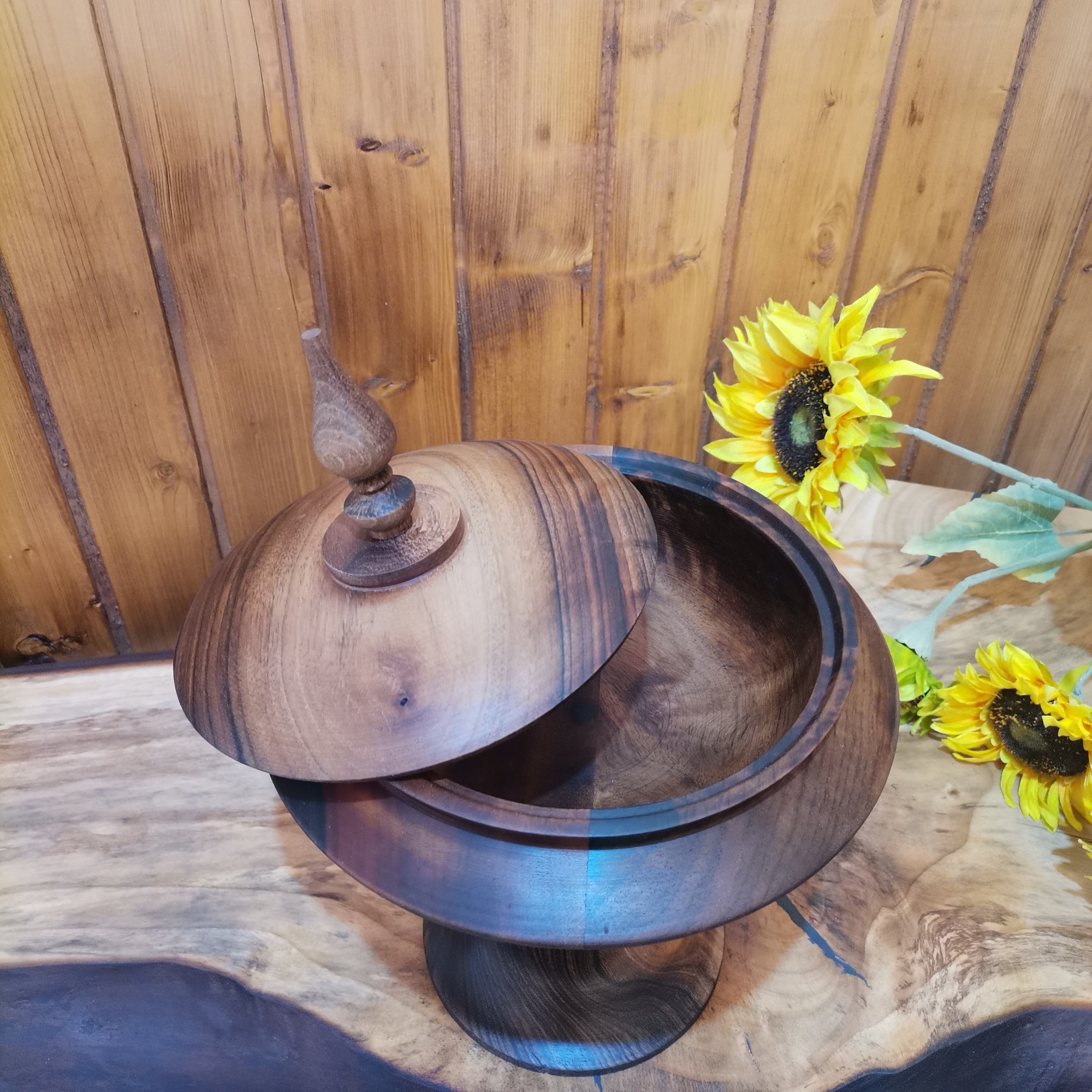 ساخته شده با مرغوبترین چوب گردو، درب دار که از خشک شدن محتوای آن جلوگیری میکند پایه با تاج همخونی دارد که جلوه خاصی به کار داده ، گود و جادار