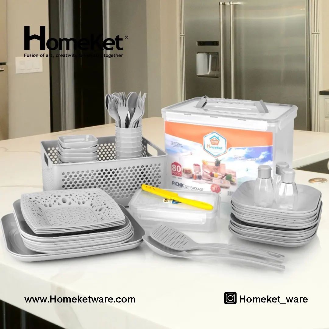 ست پیک نیک ۸۰ پارچه هوم کت در رنگ های طوسی ٬ وانیلی ٬ صورتی پاستیلی ٬ صورتی کرپ و سفید سرویس شامل ۸ عدد بشقاب ۸ عدد پیش دستی ۸ عدد خورش خوری ۸ عدد لیوان ۸ عدد چنگال ۸ عدد قاشق ۸ عدد چاقو ۸ عدد پیاله ۱ عدد سبد سرویس مسافرتی ۲ عدد دیس ۱ عدد کفگیر ۱ عدد ملاقه ۱ عدد ظرف فریزری ۱۵۰۰ میلی لیتری ۱ عدد ظرف فریزری ۸۳۰ میلی لیتری ۴ عدد سبد نان و سبزی سایز یک ۳ عدد نمک پاش ۱ عدد چاقو