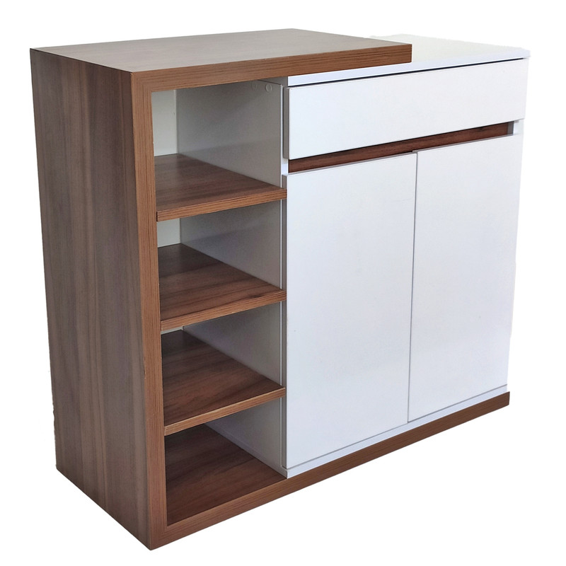 این مدل جا کفشی در عین سادگی ، نمای فوق العاده شیک و لاکچری به پاگرد شما می دهد . مدل دو رنگ الهام گرفته از مدل های شیک و بروز خارجی و سایت های مطرح بین المللی ساخته شده است به همین خاطر نمایی لوکس به پاگرد شما میبخشد . جاکفشی مدل دو رنگ دستگیره مخفی از MDF پاک چوب درجه یک تولید شده و از یراق الات با کیفیت در کمد و کشو آن استفاده شده است . تا حد امکان سعی شده که پیچ در نمای آن استفاده نشود . در مدل لوکس از دستگیره استفاده نشده و دستگیره آن مخفی میباشد . ابعاد 90 سانت عرض ، 80 سانت ارتفاع ، 35 سانت عمق