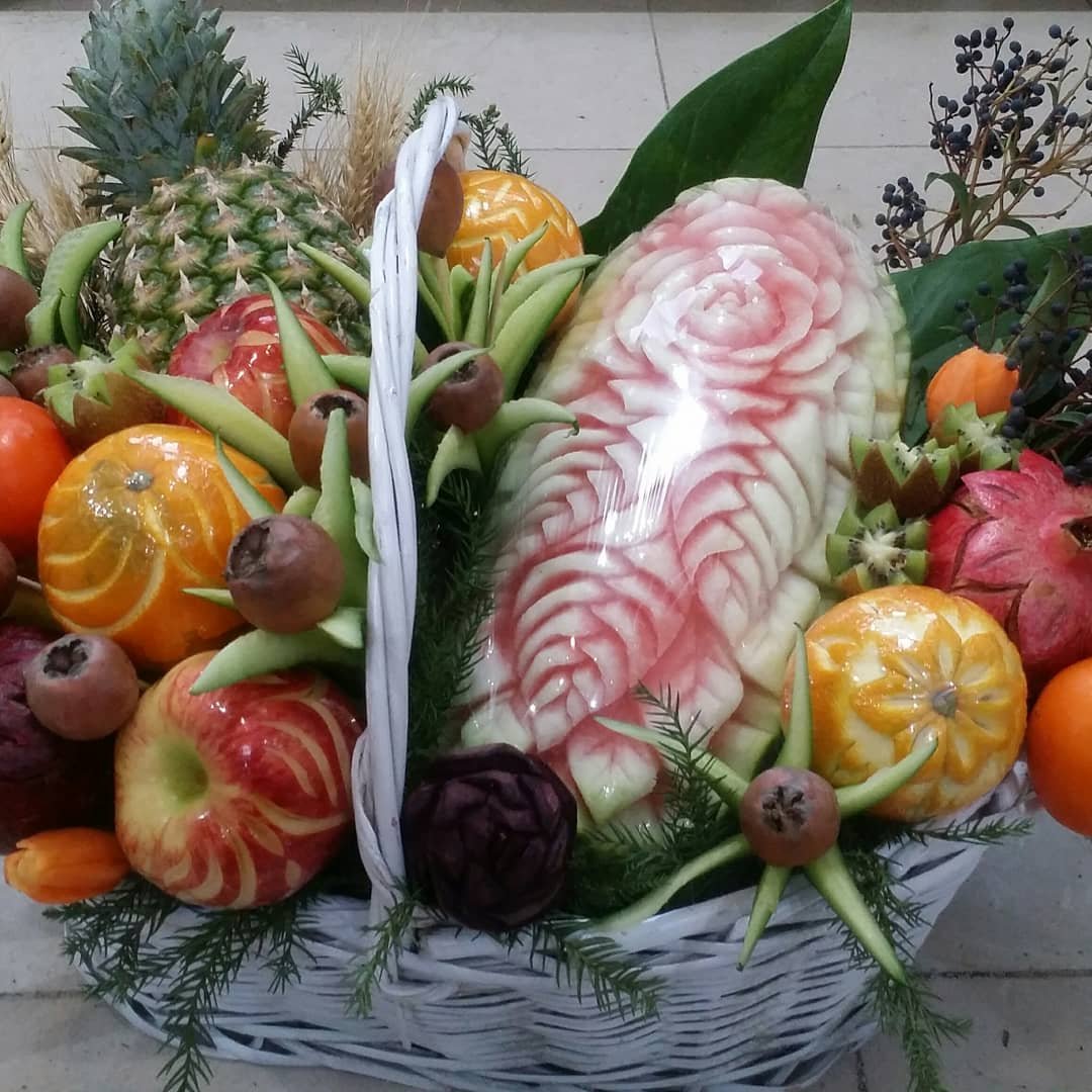 سبد میوه آرایی ،تزیین هندوانه،حکاکی هندوانه،هندوانه یلدا،میوه یلدا مبلمونسرا مدل 275883