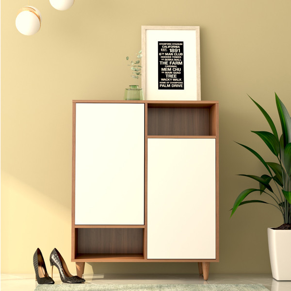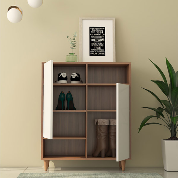 جاکفشی SR006 با طراحی ساده و مینیمال از ام دی اف با کیفیت ساخته شده است .درب های این جاکفشی بصورت مگنتی و دارای لولای آرامبند بوده که براحتی باز و بسته شده و با توجه به عمق و ابعاد جاکفشی فضای بسیار زیادی برای قرار دادن هر نوع کفشی را دارد.همچنین دارای یک قسمت مجزا برای قراردادن لوازم جانبی مثل واکس است.