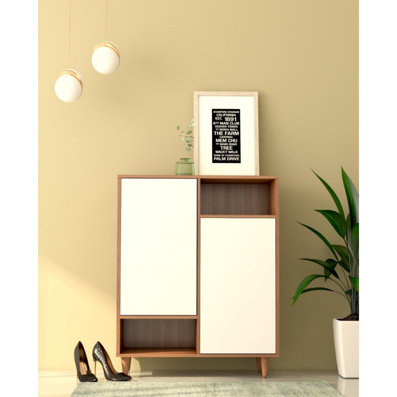 جاکفشی مدرن از جنس ام دی اف و پایه های چوب روس و لولاهای آرام بند و دارای دربهای فشاری و طبقات متحرک جهت قرار دادن کفشهایی با ارتفاع مختلف و فضایی برای کفشهای خاص