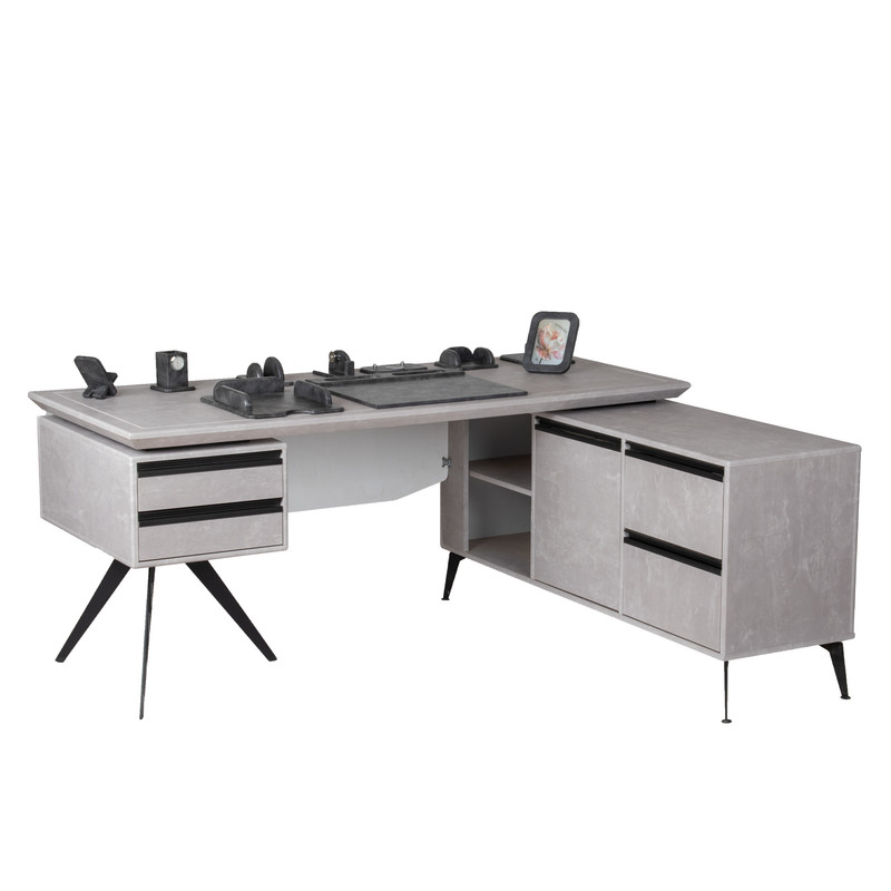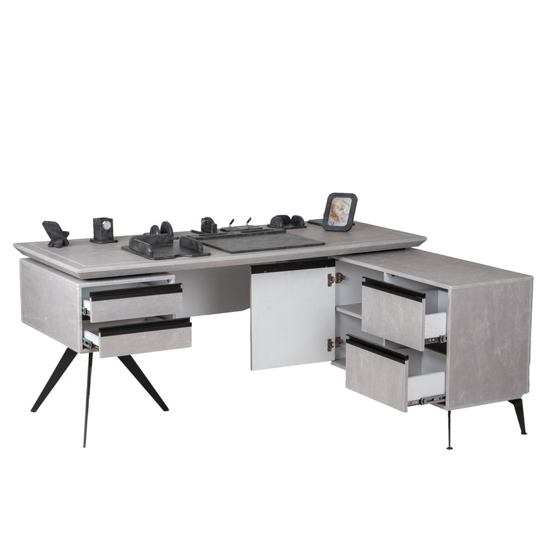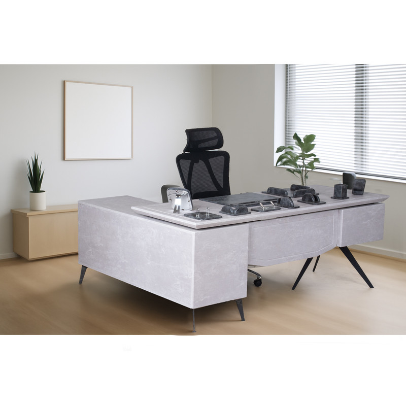 میز مدیریت مدل M_ITl620 با طراحی کاربردی و ظاهری شیک، انتخابی مناسب برای مدیرانی است که به دنبال ترکیب عملکرد بالا و زیبایی در فضای کاری خود هستند. این مدل با ابعاد اصلی 180×75 سانتیمتر و ال جانبی متصل با اندازه 152×47 سانتیمتر، فضای کاری وسیع و منظمی را فراهم میکند. صفحه اصلی میز از MDF با ضخامت 5 سانتیمتر تولید شده که با روکش وکیوم مقاوم، ظاهری لوکس و مدرن به آن میبخشد. پایههای فلزی با ضخامت 4 میلیمتر نیز استحکام و طول عمر بالای میز را تضمین میکنند. ال چسبیدهی این مدل بهگونهای طراحی شده که نیازهای ذخیرهسازی روزمره را بهطور کامل پوشش دهد. این بخش شامل چهار کشوی روان، یک کمد دربدار و فضایی مخصوص برای قرارگیری زنها و پوشهها است که موجب افزایش نظم و بهرهوری در محیط کار میشود. ویژگیهای برجسته: مدل: M_ITl620 ابعاد صفحه اصلی: 180×75 سانتیمتر ابعاد ال جانبی: 152×47 سانتیمتر صفحه MDF ضخیم (5 سانتیمتر) با روکش وکیوم ضدخش پایههای فلزی مقاوم (4 میلیمتر ضخامت) دارای 4 کشو، 1 کمد و جای زن مناسب برای دفاتر مدیریت، اتاق جلسات و فضاهای اداری مدرن است.