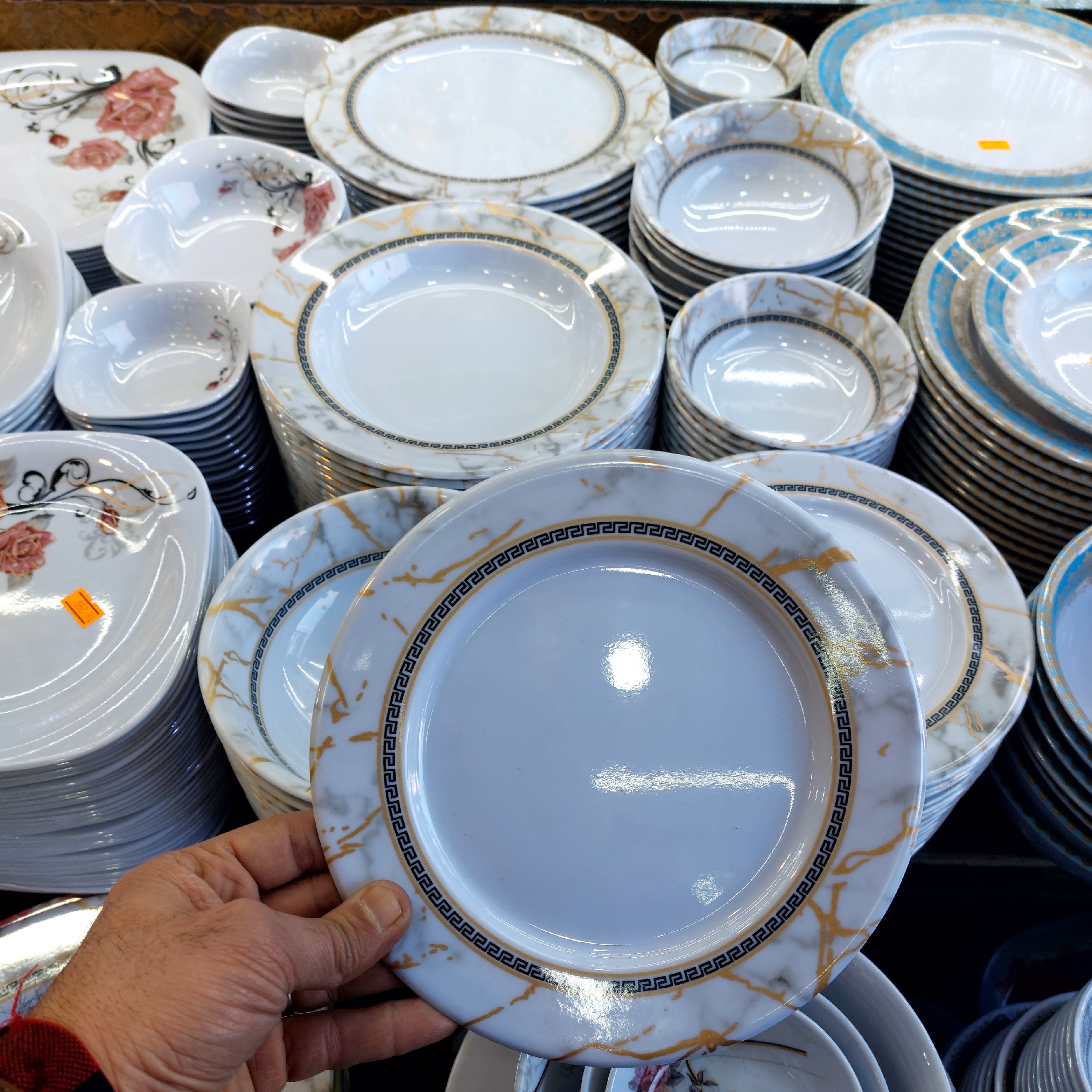 سرویس 26 پارچه ملامین نشکن و استاندارد طرح ورساچ ماربل مبلمونسرا مدل 289537