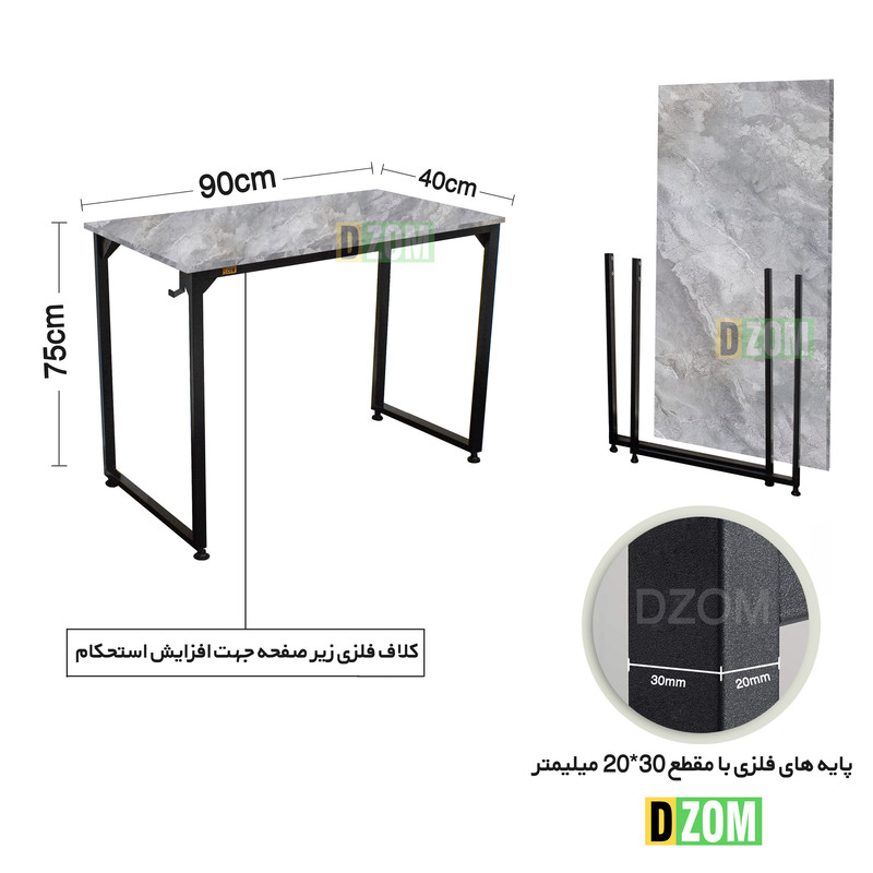 میز لپ تاپ DZom مدل مونتاژی TLD_asm_90×40_GR محصولی مونتاژی، سبک، شیک و در عین حال جذاب و کارآمد از سری تولیدات میباشد. مشتری گرامی توجه نمایید محصولات برند (شماره ثبت 414013 اداره ثبت علائم تجاری) با کیفیت و بسته بندی اصلی تنها توسط فروشنده رسمی در دیجیکالا عرضه میشود، لطفاً از خرید کالای تقلبی از سایر فروشندگان خودداری فرمایید. این محصول بصورت سلف اسمبل (مونتاژی) تولید شده است. این میز حمل و نقل آسان و هزینه حمل مقرون به صرفه ای دارد. این میز از پایه های فلزی با مقطع 30x20 میلیمتر و رنگ رویه الکترو با ی و دوام بالا ساخته شده است. همچنین پایه های پیچی، قابلیت تنظیم نسبت به سطح زمین را دارد تا بهترین تراز جهت جلوگیری از تکان خوردن را ایجاد نماید. صفحه میز از جنس MDF درجه یک به رنگ طوسی می باشد. این محصول با طول 90cm، عرض 40cm و ارتفاع 75cm عرضه می شود. به این نکته توجه شود که تنوع رنگ انتخابی کالا تنها مربوط به رنگ پایه های فلزی میباشد.