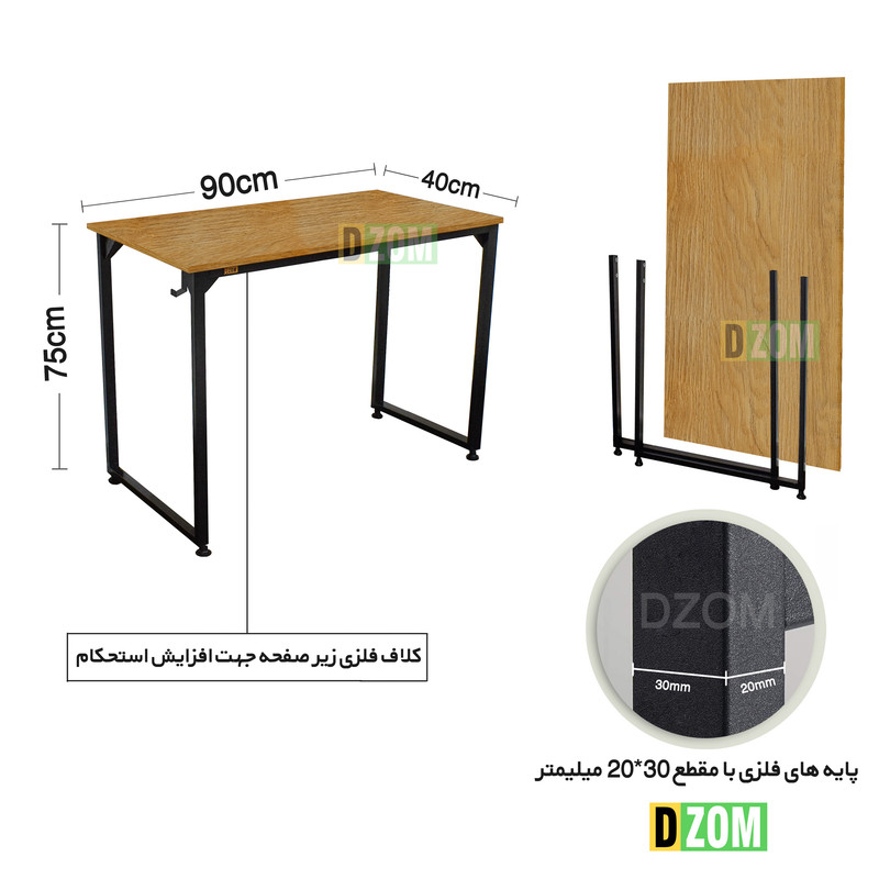 میز لپ تاپ DZom مدل مونتاژی TLD_asm_90×40_LIGHT محصولی مونتاژی، سبک، شیک و در عین حال جذاب و کارآمد از سری تولیدات میباشد. مشتری گرامی توجه نمایید محصولات برند (شماره ثبت 414013 اداره ثبت علائم تجاری) با کیفیت و بسته بندی اصلی تنها توسط فروشنده رسمی در دیجیکالا عرضه میشود، لطفاً از خرید کالای تقلبی از سایر فروشندگان خودداری فرمایید. این محصول بصورت سلف اسمبل (مونتاژی) تولید شده است. این میز حمل و نقل آسان و هزینه حمل مقرون به صرفه ای دارد. این میز از پایه های فلزی با مقطع 30x20 میلیمتر و رنگ رویه الکترو با ی و دوام بالا ساخته شده است. همچنین پایه های پیچی، قابلیت تنظیم نسبت به سطح زمین را دارد تا بهترین تراز جهت جلوگیری از تکان خوردن را ایجاد نماید. صفحه میز از جنس MDF درجه یک برجسته طرح چوب به رنگ قهوه ای روشن می باشد. این محصول با طول 90cm، عرض 40cm و ارتفاع 75cm عرضه می شود. به این نکته توجه شود که تنوع رنگ انتخابی کالا تنها مربوط به رنگ پایه های فلزی میباشد.