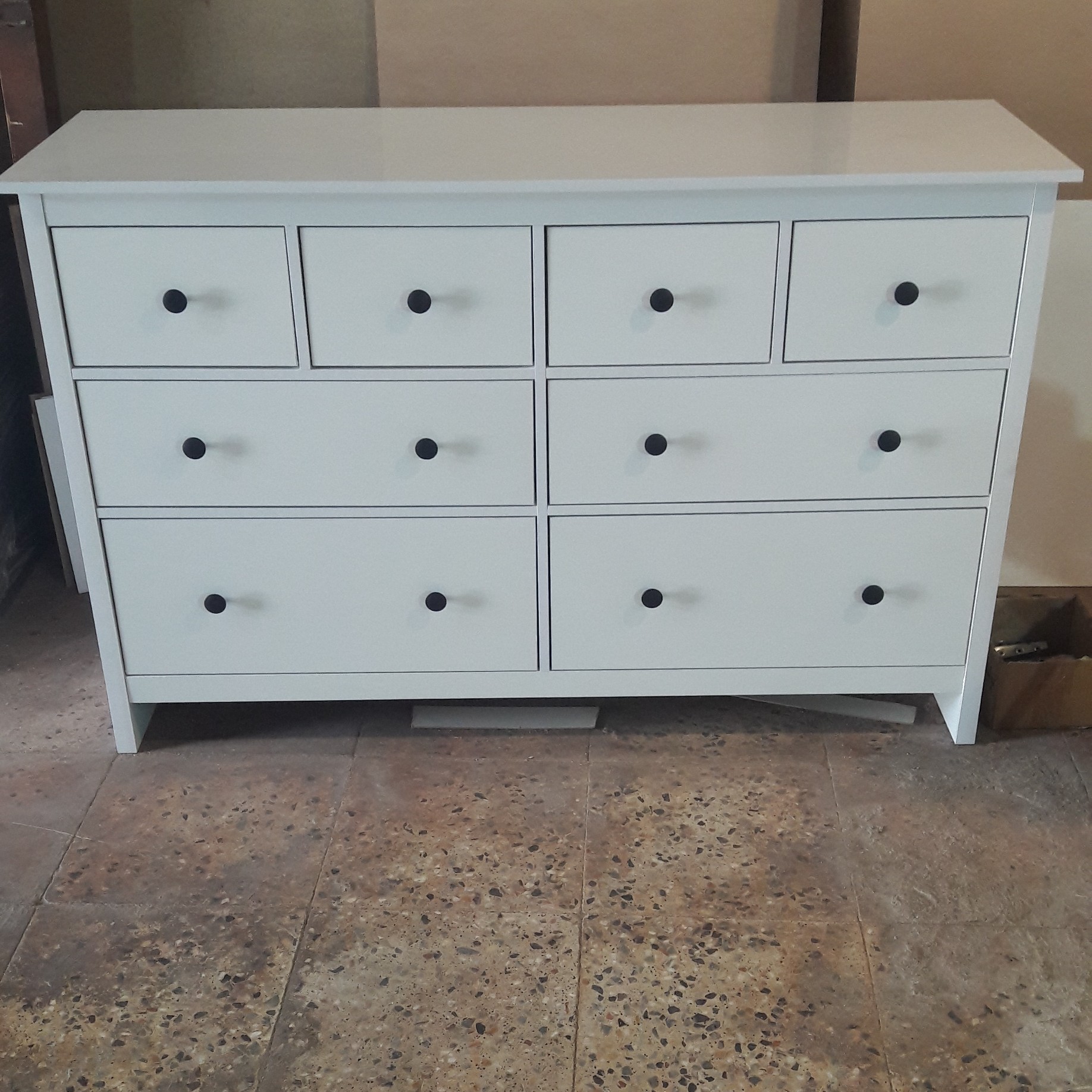 دراور ۸ کشو طرح لوکاس طول ۱۵۰ ارتفاع ۹۵ عمق ۵۰ عمق کشوها با گودی ۲۲ سانت میباشد کف کشو ها شیاردار با قید کمکی عرضه رنگ های دیگر موجود میباشد قیمت درج شده برای رنگ سفید می باشد