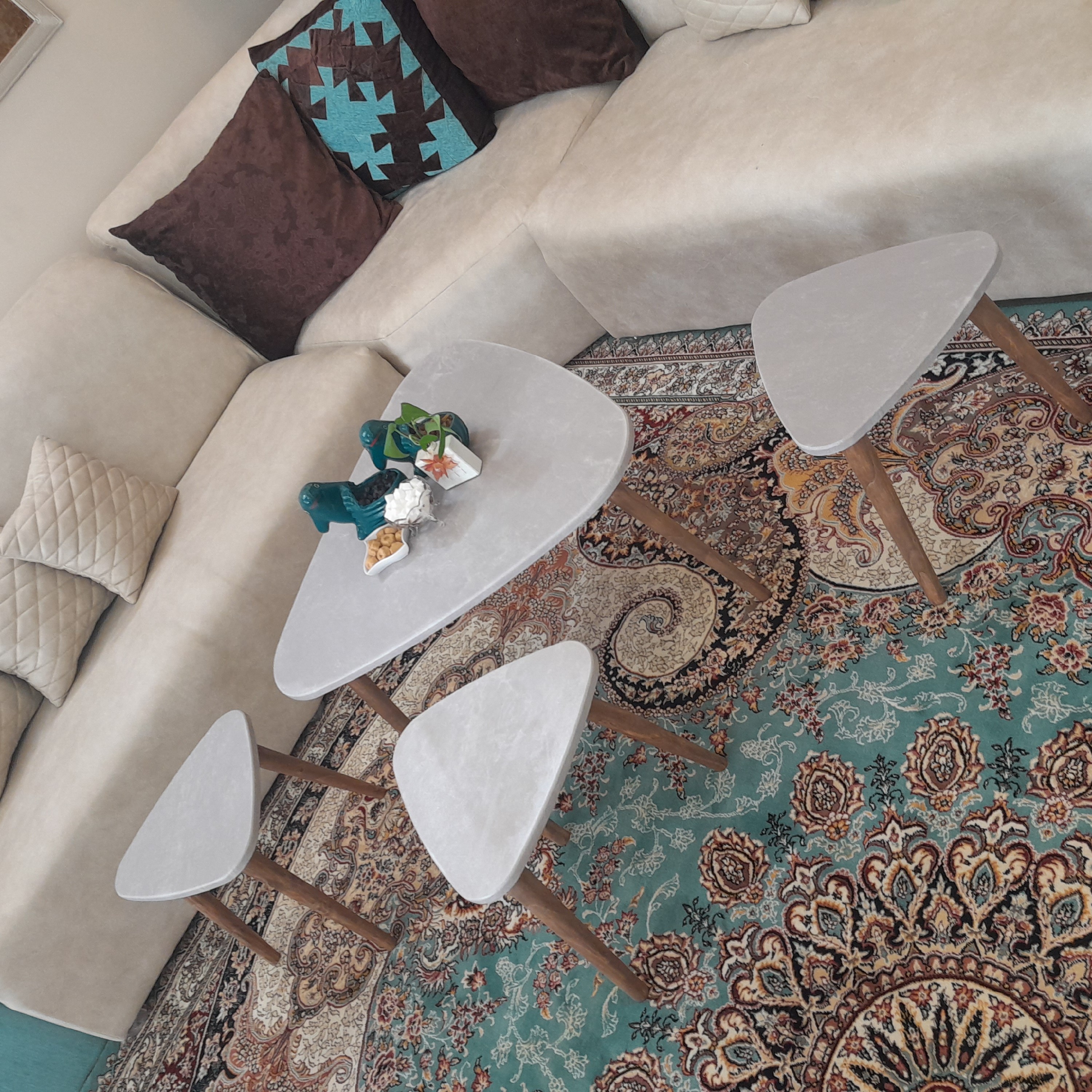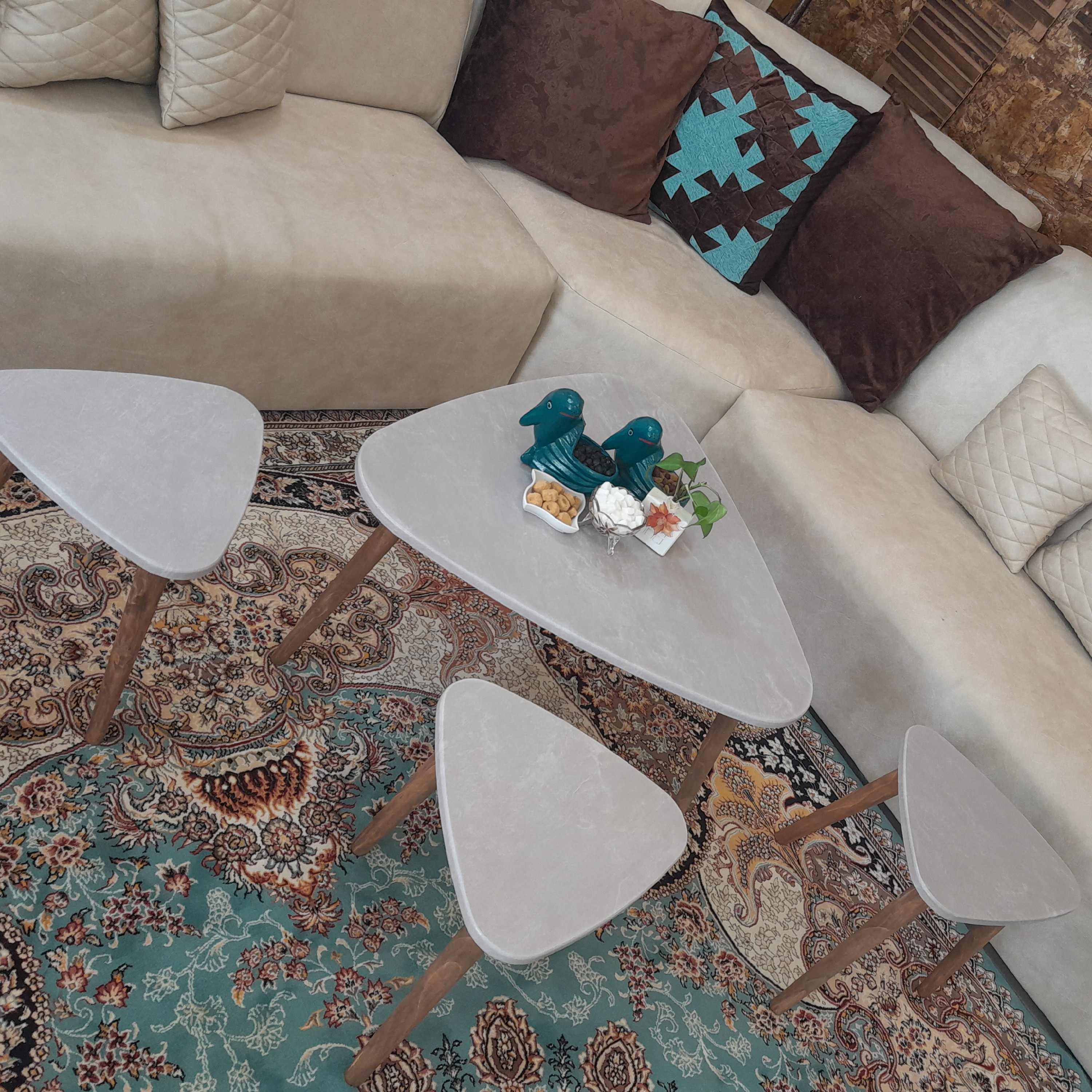میز جلو مبلی مثلث 4تکه دارای رنگبندی و هزینه ارسال با مشتری میزجلومبلی میز عسلی میزعسلی میز مبلمونسرا مدل 218239