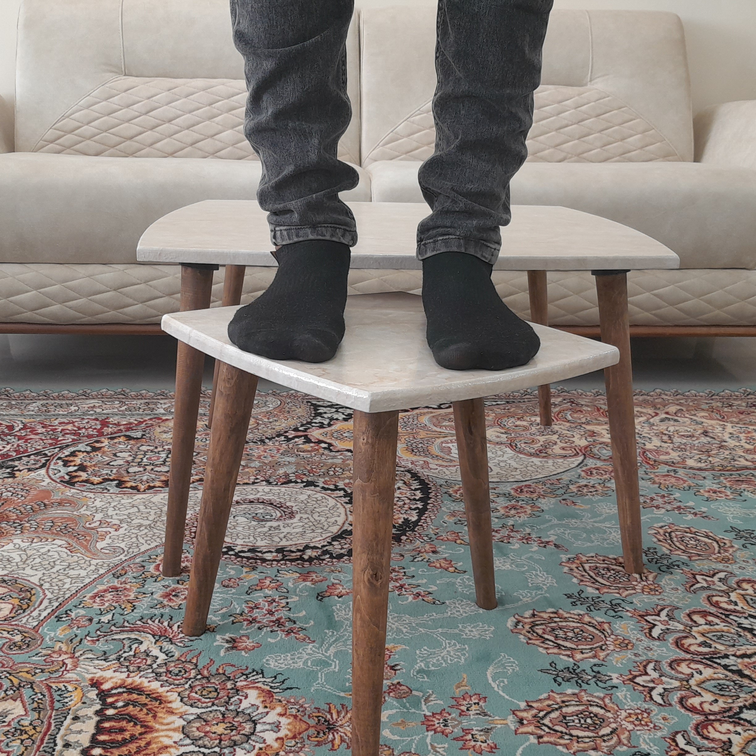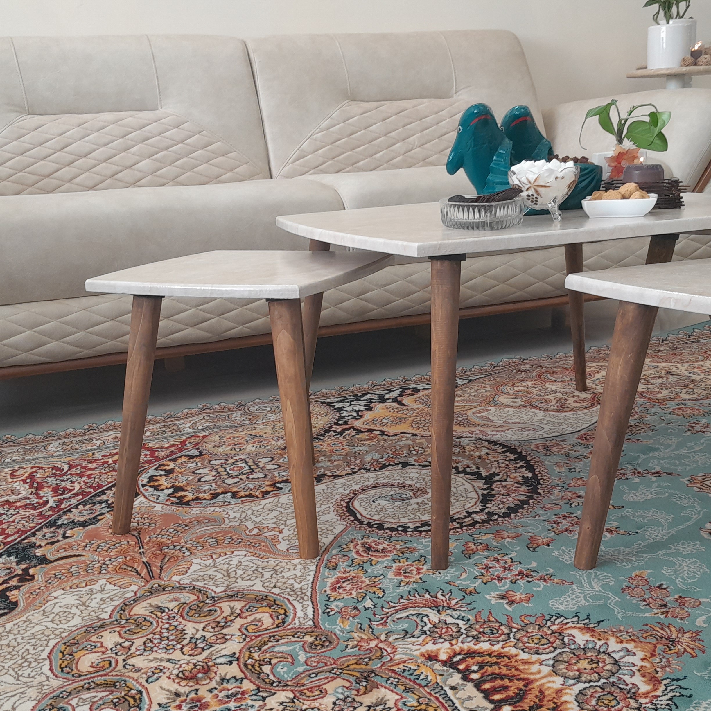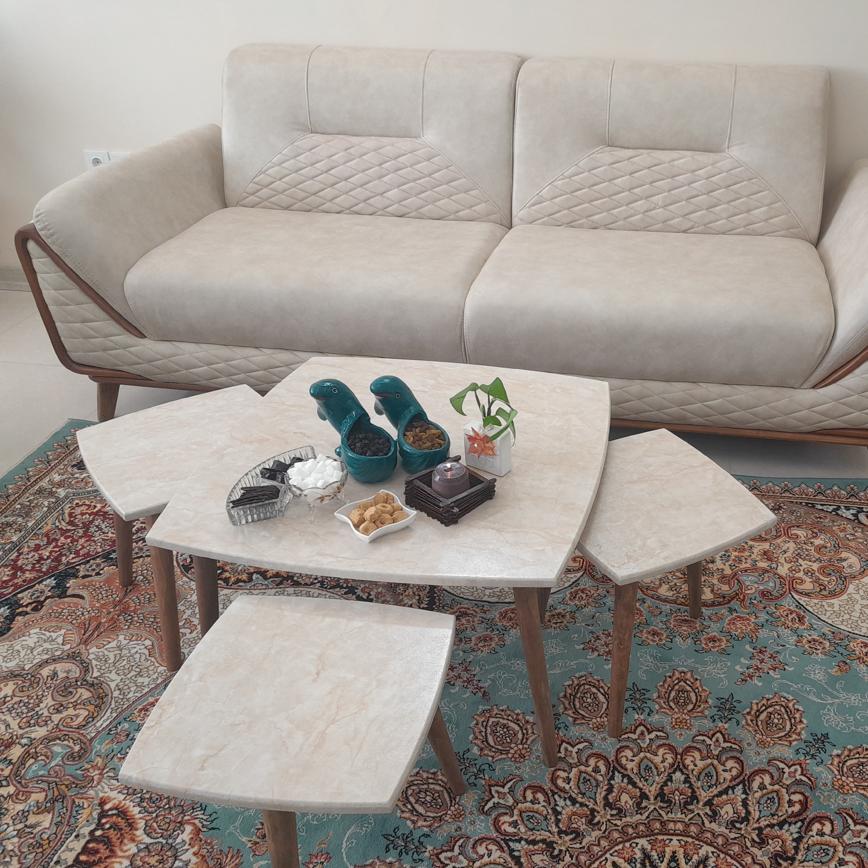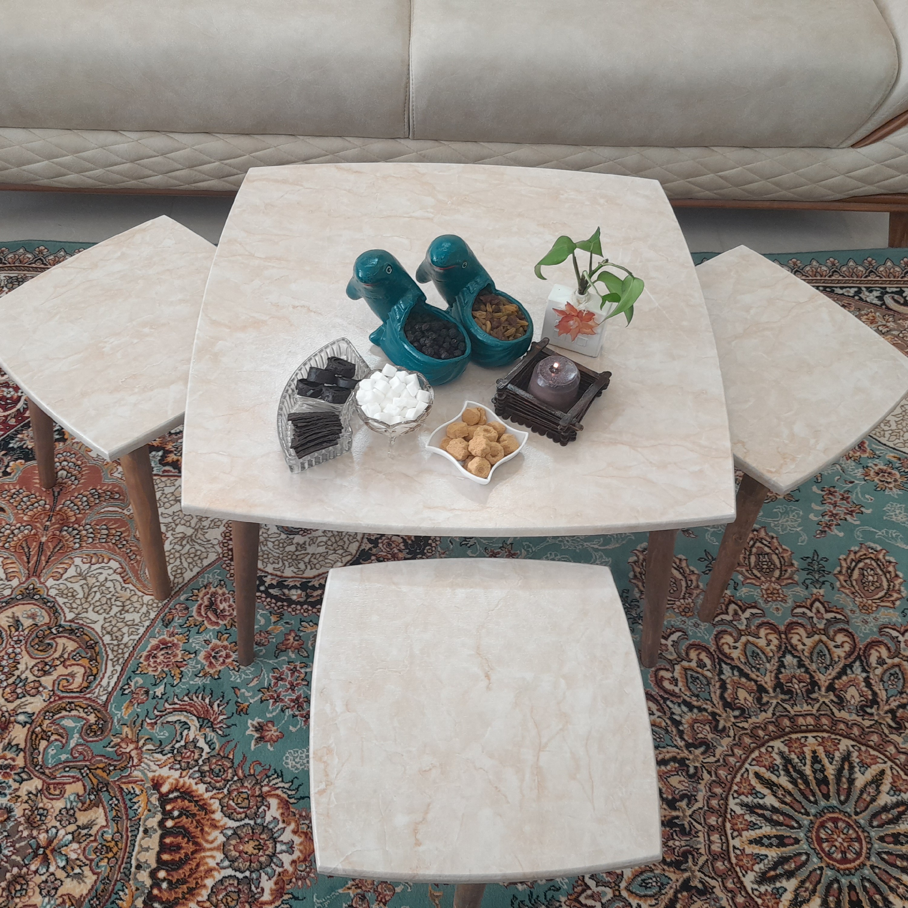 میز جلو مبلی مربع کرم طرح سنگ 4تکه هزینه ارسال با مشتری کمترین قیمت میزجلومبلی میز عسلی میزعسلی میز مبلمونسرا مدل 219390