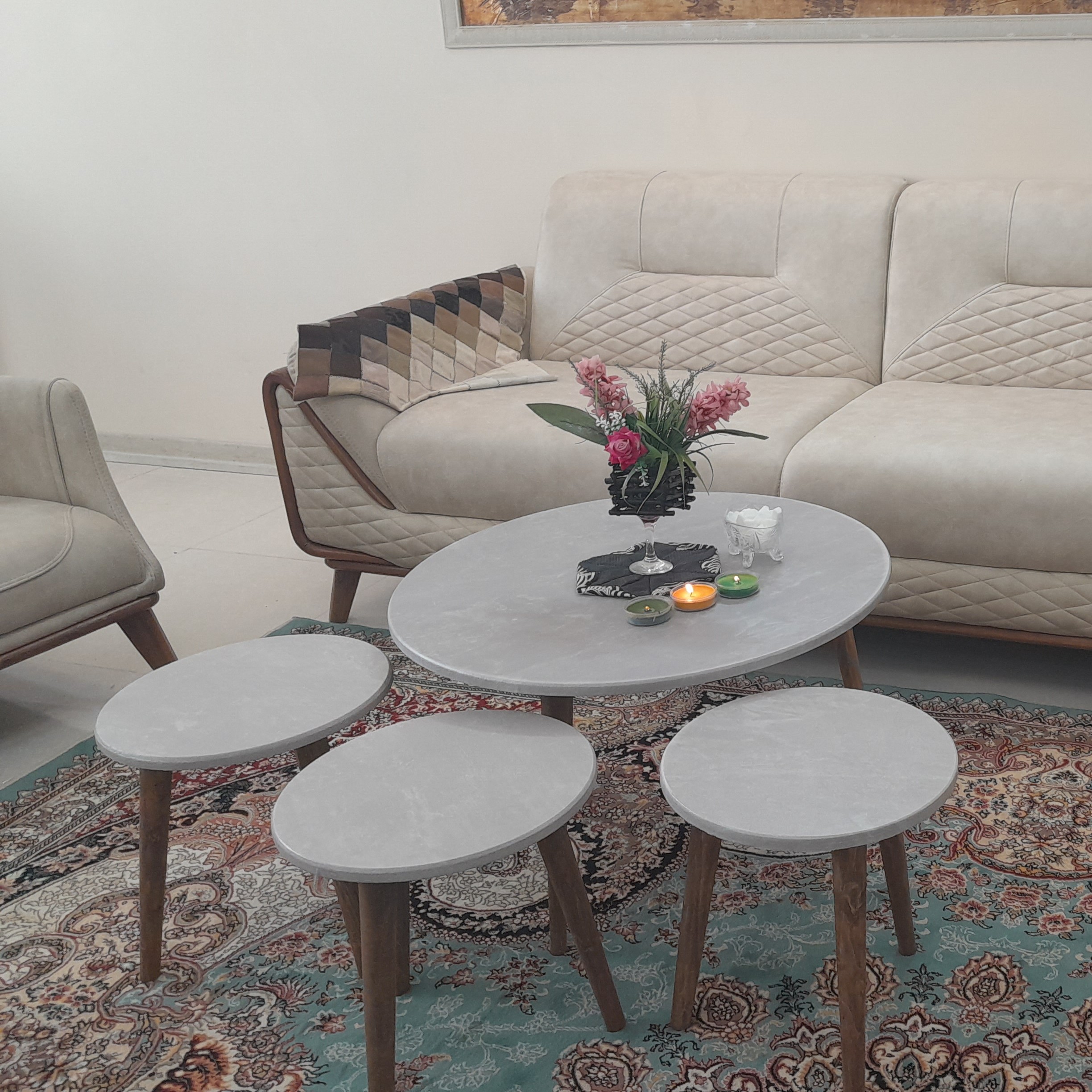 میز جلو مبلی دایره خاکستری ابروباد 4تکه هزینه ارسال با مشتری کمترین قیمت میزجلومبلی میز عسلی میزعسلی میز مبلمونسرا مدل 220319